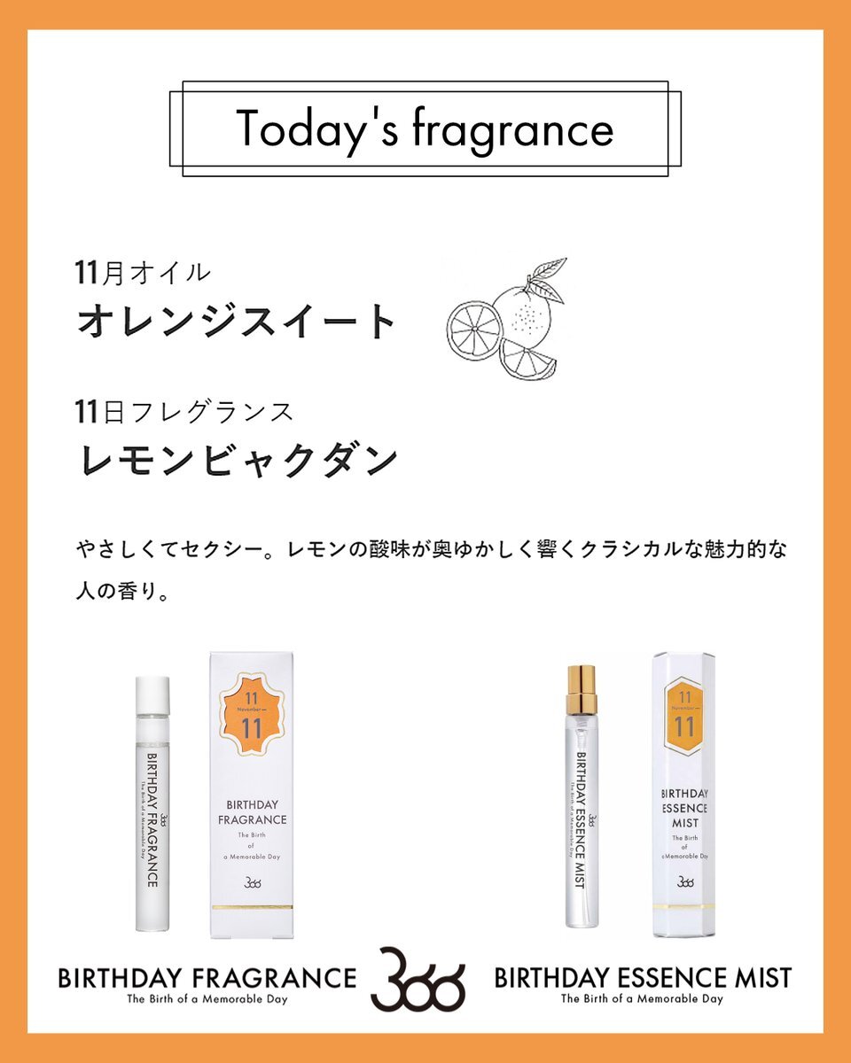 今日11月7日の香りは… 月のオイル: #オレンジスイート 日の香り:#ホワイトムスク しっとりとした甘さから漂う色っぽさ。清潔感があるけれどどこかセクシーな印象。 #バースデーフレグランス #11月生まれ #誕生日香水 🎁SHOP🎁 f-room.shop/pages/366 pic.x.com/rsJXMQXZ6X