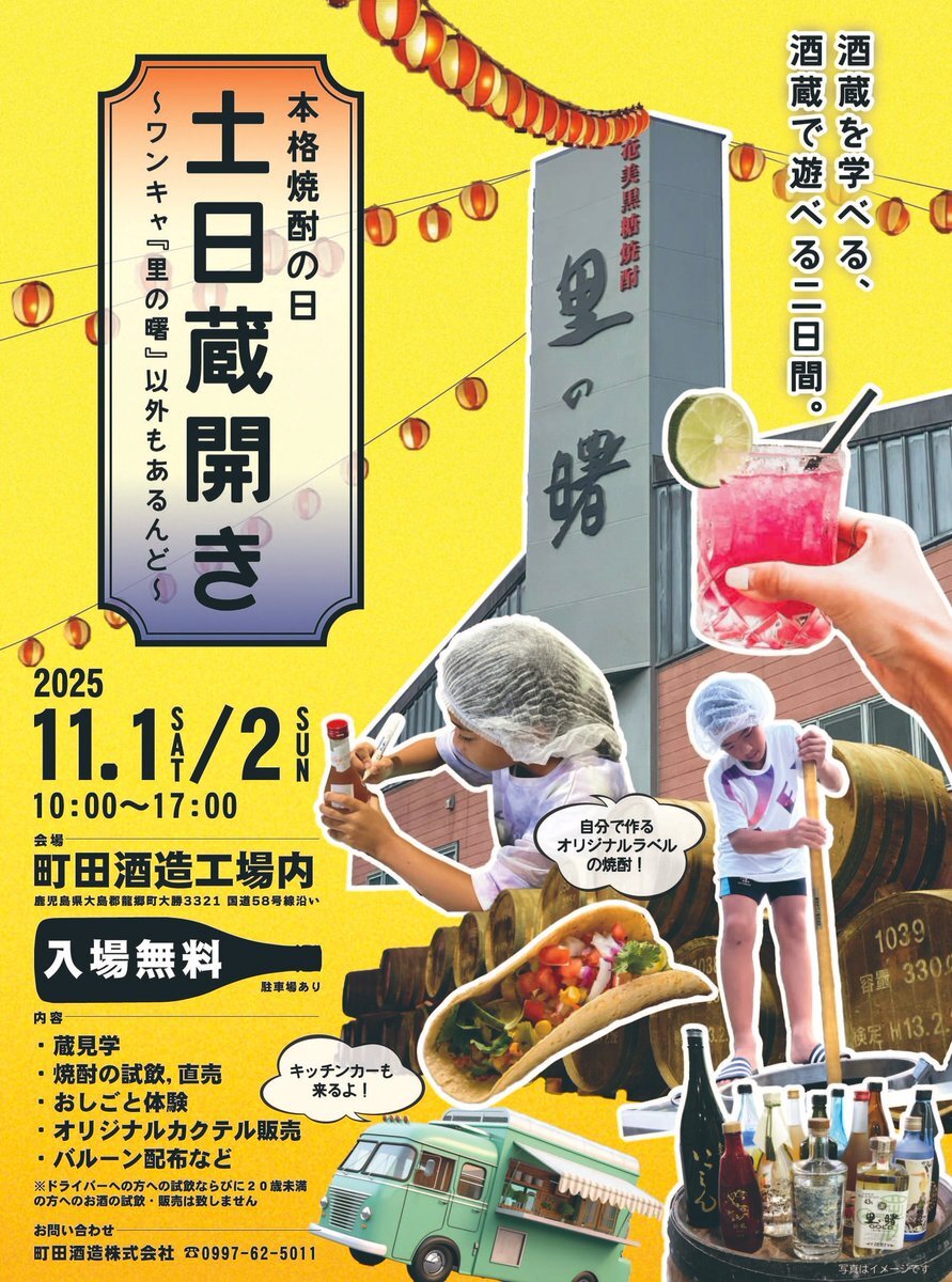 11/1,2と町田酒造では「土日蔵開き」開催🥃 instagram.com/p/DPV_RDfE_g6/ #11月1日は本格焼酎の日 #蔵見学 #試飲 #直売 #子ども向けおしごと体験 #オリジナルカクテル販売 #キッチンカー #奄美 #AMAMI #奄美大島旅行 #奄美旅 #一人旅 #リトリート #移住 #ワーケーション #世界自然遺産 #1日1奄美 pic.x.com/3iJCIukn8w