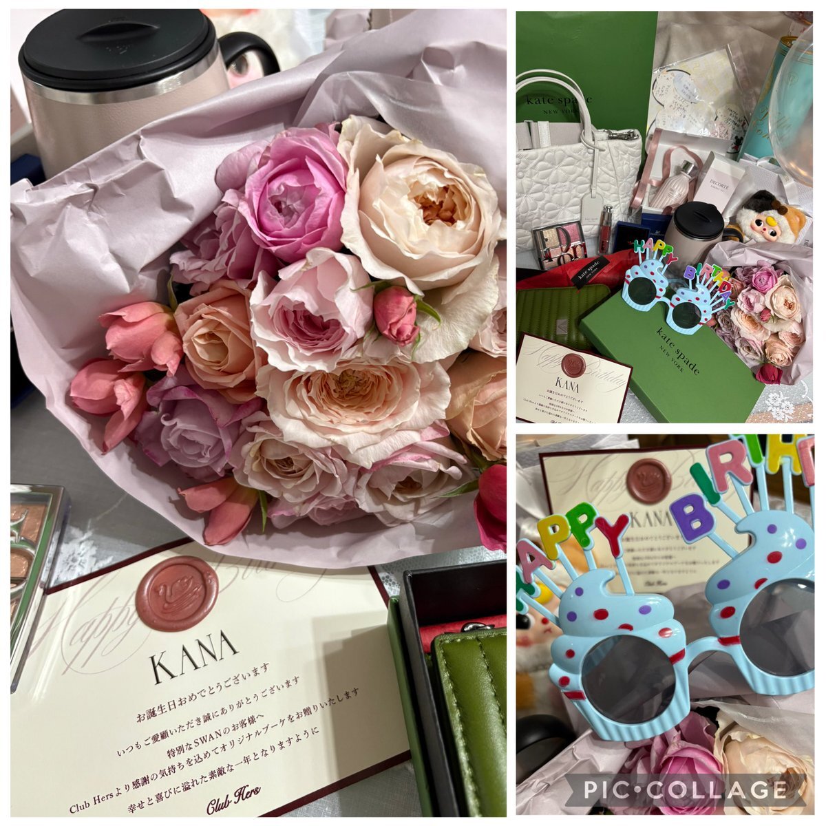 おはようございます♡ 11月1日 昨日の BDブーケ&ギフト達…🎁 旦那さんからは kate spadeのBAG&お財布。 子供達はカード。 父からは❤️指輪💍。 旦那さんのお母さんはマグ。 お友達からコスメ。 去年に続いて今年も HLT clubhersからブーケが… ありがとうございます! #11月1日生まれ #herlipto pic.x.com/Cmw6mVG1HT x.com/kana15816/stat…