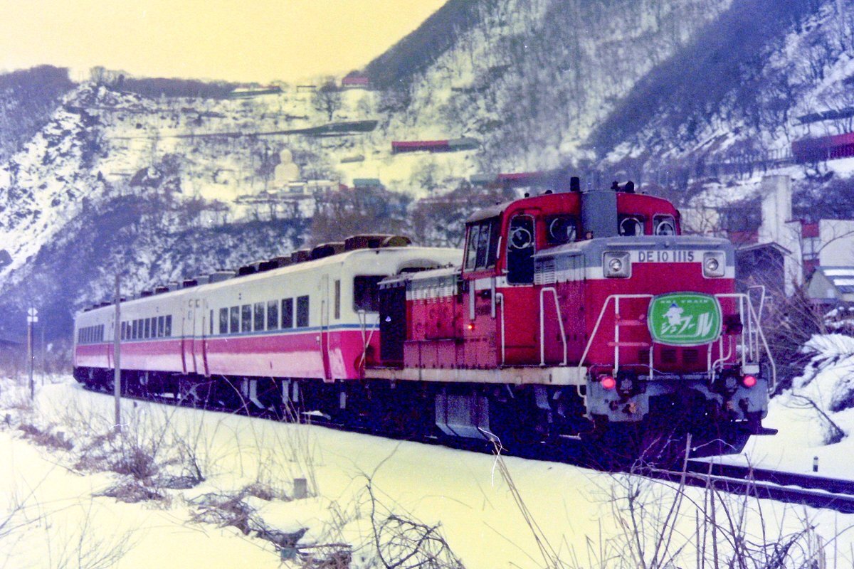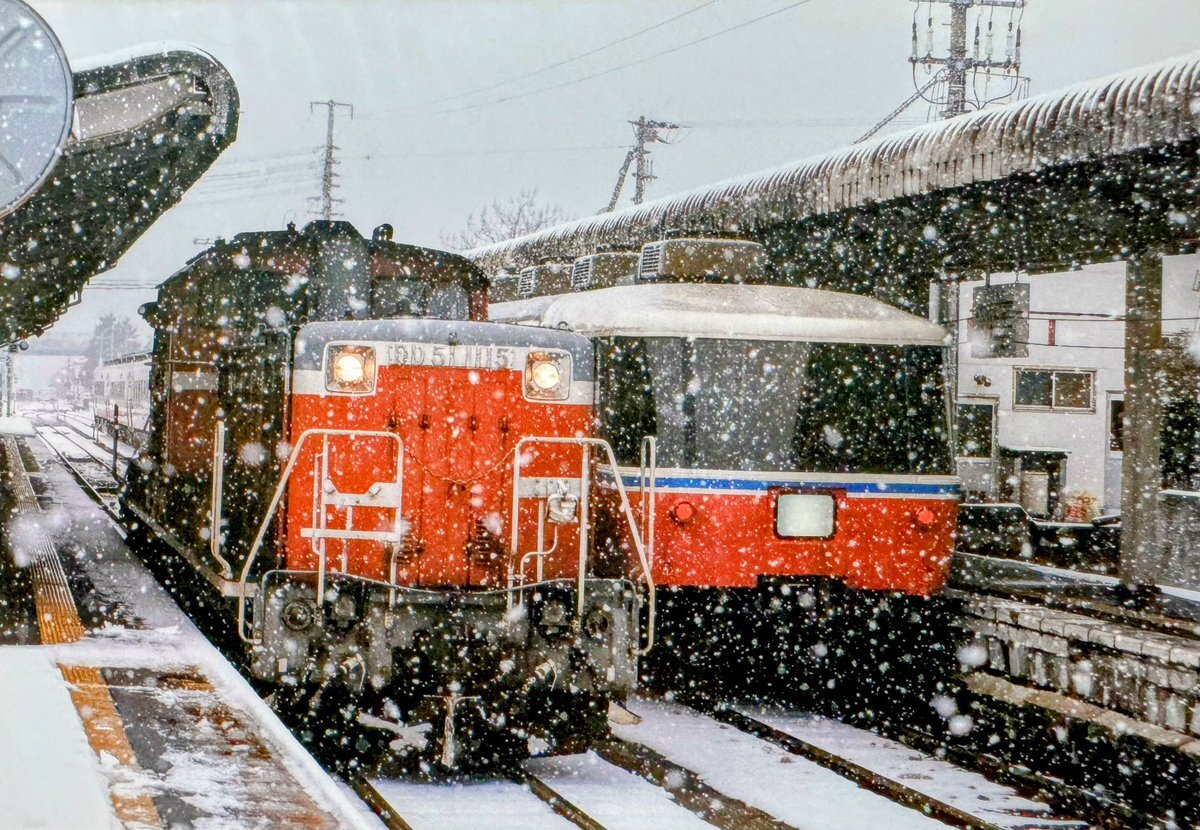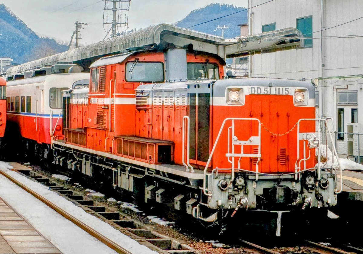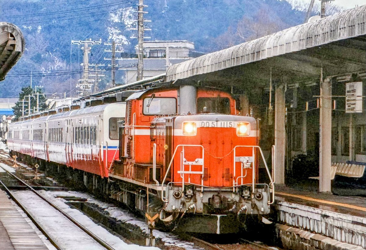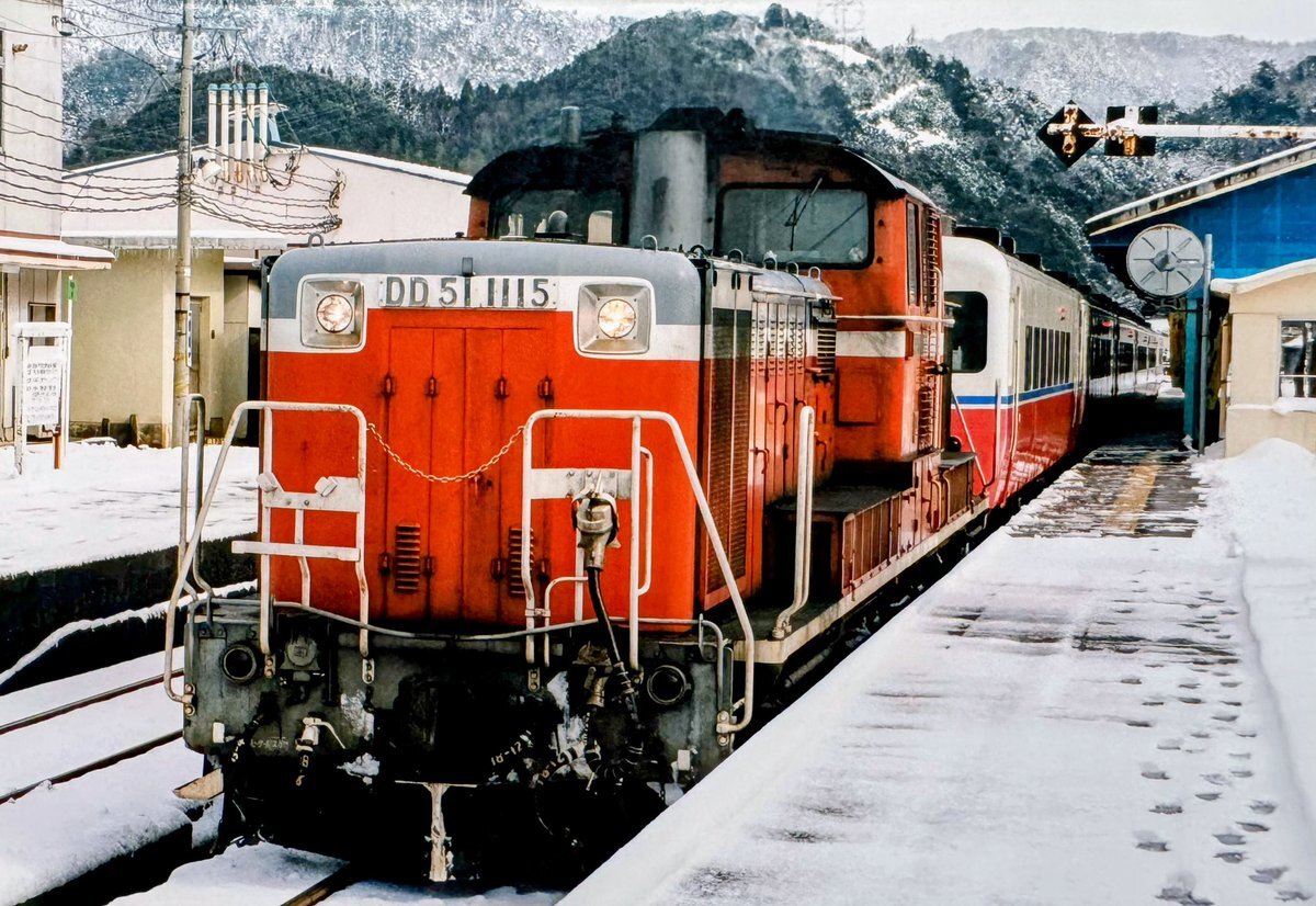 #1115号機の日 *再出画像 DD51-1115号機(福) 🦀味めくり浜坂♋️ 生野トンネル付近だったと思います😆 意外にもスピードが速かった記憶!! DD51のパワー全開😂 🤔1996年2月📷#播但線 pic.x.com/RiKaRTxnNA