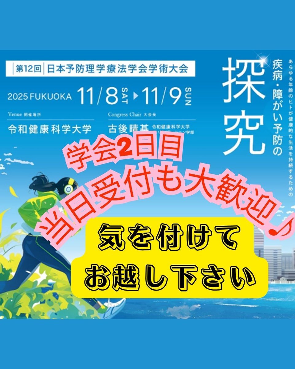 【開幕!】 第12回日本予防理学療法学会in福岡、本日スタートしました🎉 179演題の知見が交差する2日間。予防の力を、現地で体感してください。 #予防理学療法 #福岡開催 #学会開幕 #理学療法士 #179演題