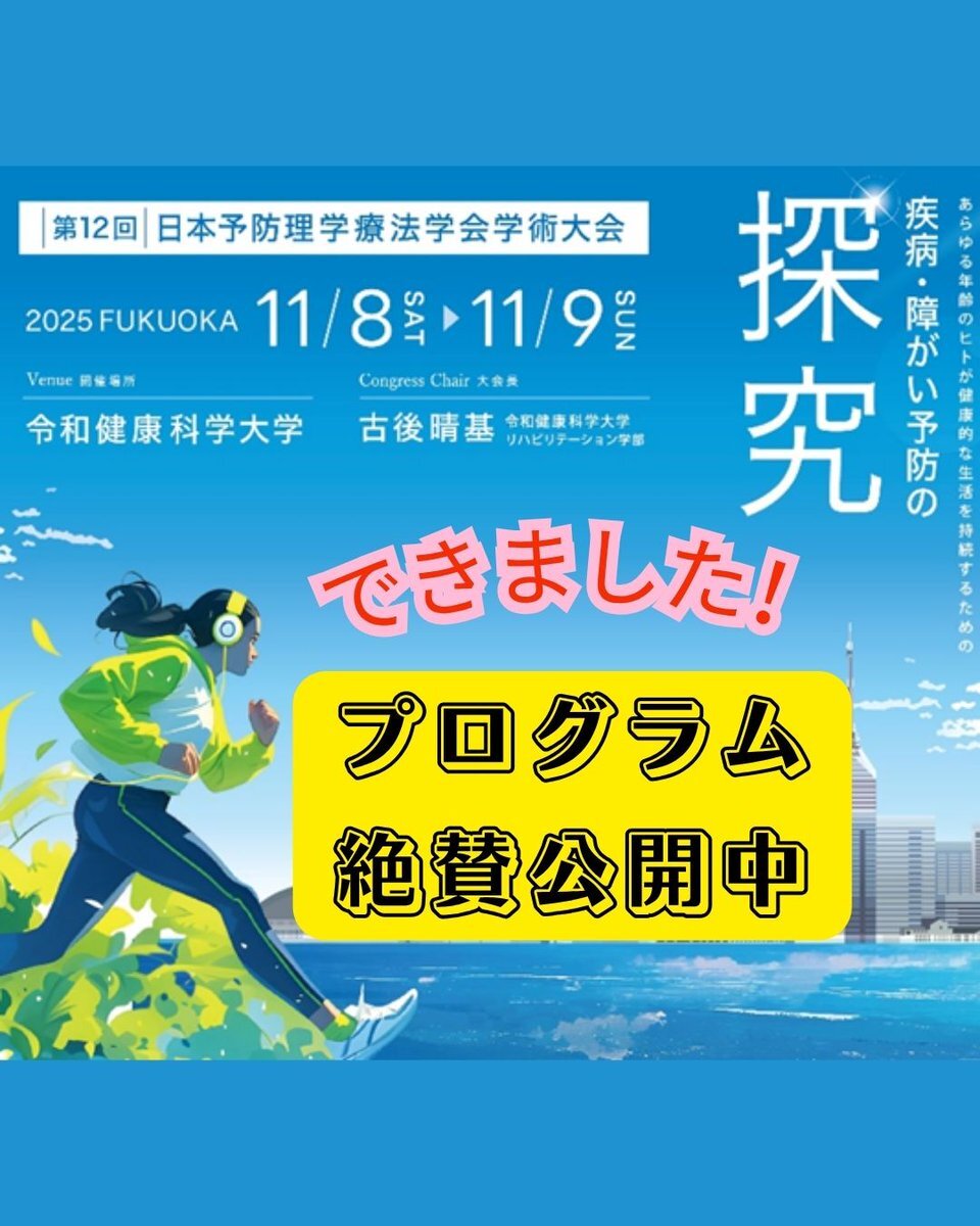 【プログラム公開!】 第12回日本予防理学療法学会in福岡の詳細プログラムが公開されました📄 179演題の多様なテーマをぜひご確認ください。 ダウンロードはこちら👉 orbit-cs.net/2025jsptp/prog… 参加登録もお忘れなく👉 orbit-cs.net/2025jsptp/regi… #予防理学療法 #学会プログラム #福岡開催 #179演題 pic.x.com/W4Jp13Jp7b