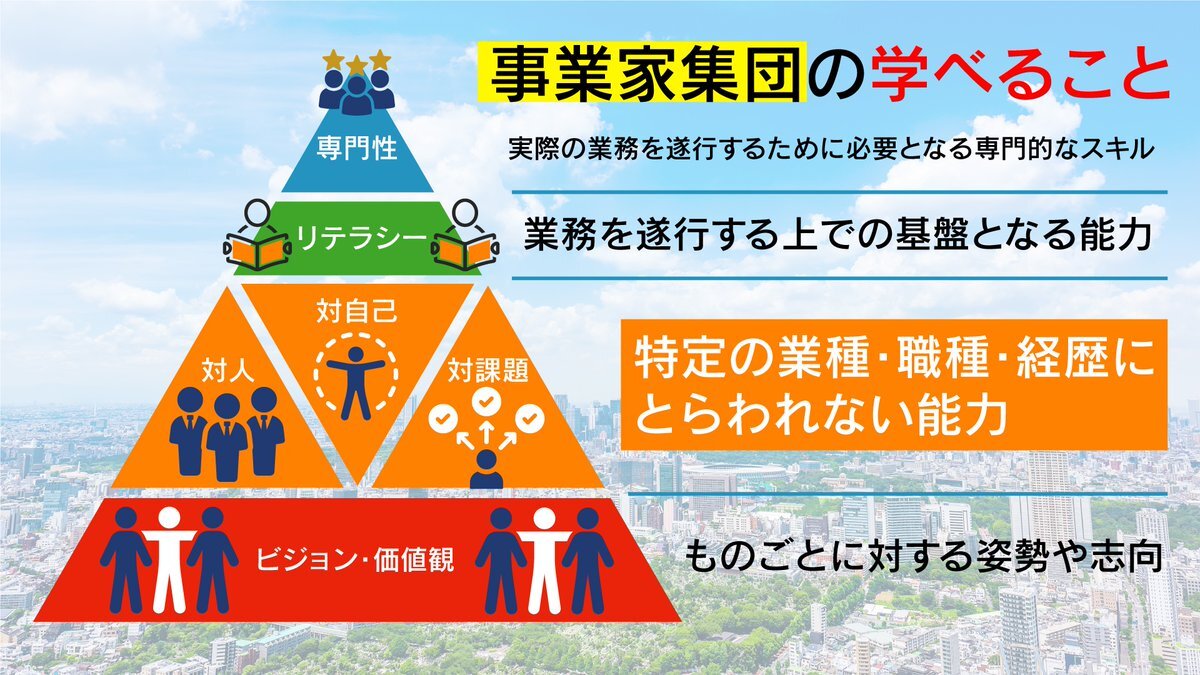 事業家集団で学べることは、 仕事に対する“姿勢”や、 特定の業種や職種にとらわれない“普遍的な力”を体得できるから、 どんな事業もうまくいかせられるし、長期で繁栄していける。 #事業家集団 #20代の挑戦 #自己投資 pic.x.com/jn1bR5npak
