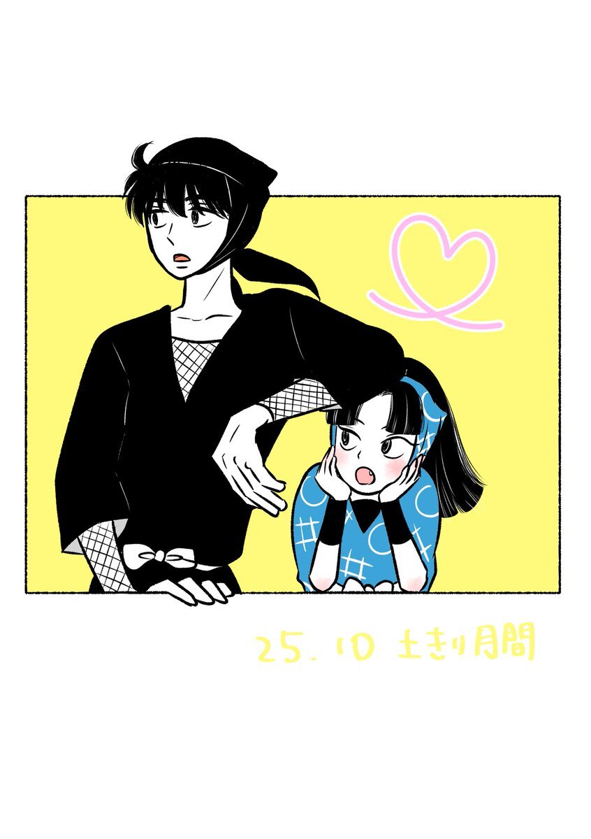 25年10月のうちになにか描きたかったので描けてよかった!!原点回帰しちゃったな〜😌 大勢でわちゃわちゃ忍務に取り組んでるのに急に傍観者ぶってふたりの世界になるのが好きです。仲いいな!!な! #2025年10月は土井きり月間 pic.x.com/asLcMECSQI