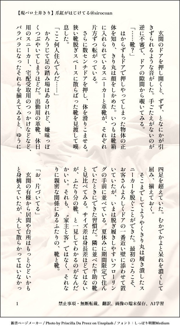 #2025年10月は土井きり月間 昨日の夜に可愛い土きり(2510)アップしました✨✨ 土→きり風味!愛は重たいけど健全です☺ 夜明けの晩はたぶん来ない | 桜乃 #pixiv pixiv.net/novel/show.php…