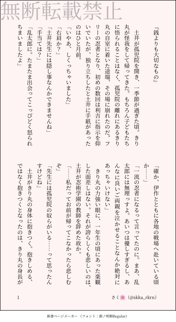 #2025年10月は土井きり月間 【SSS練習20日目】 土きり 成長if 3116くらい? ⚠tdi設定あり 孤児院に帰ってきたフリーの🥷のきりちゃが傷を負っている話。 やることやって出来上がっている土きりです 『銭よりも大切なもの』(1/5) ↓続きます pic.x.com/TVd9iZXU1i