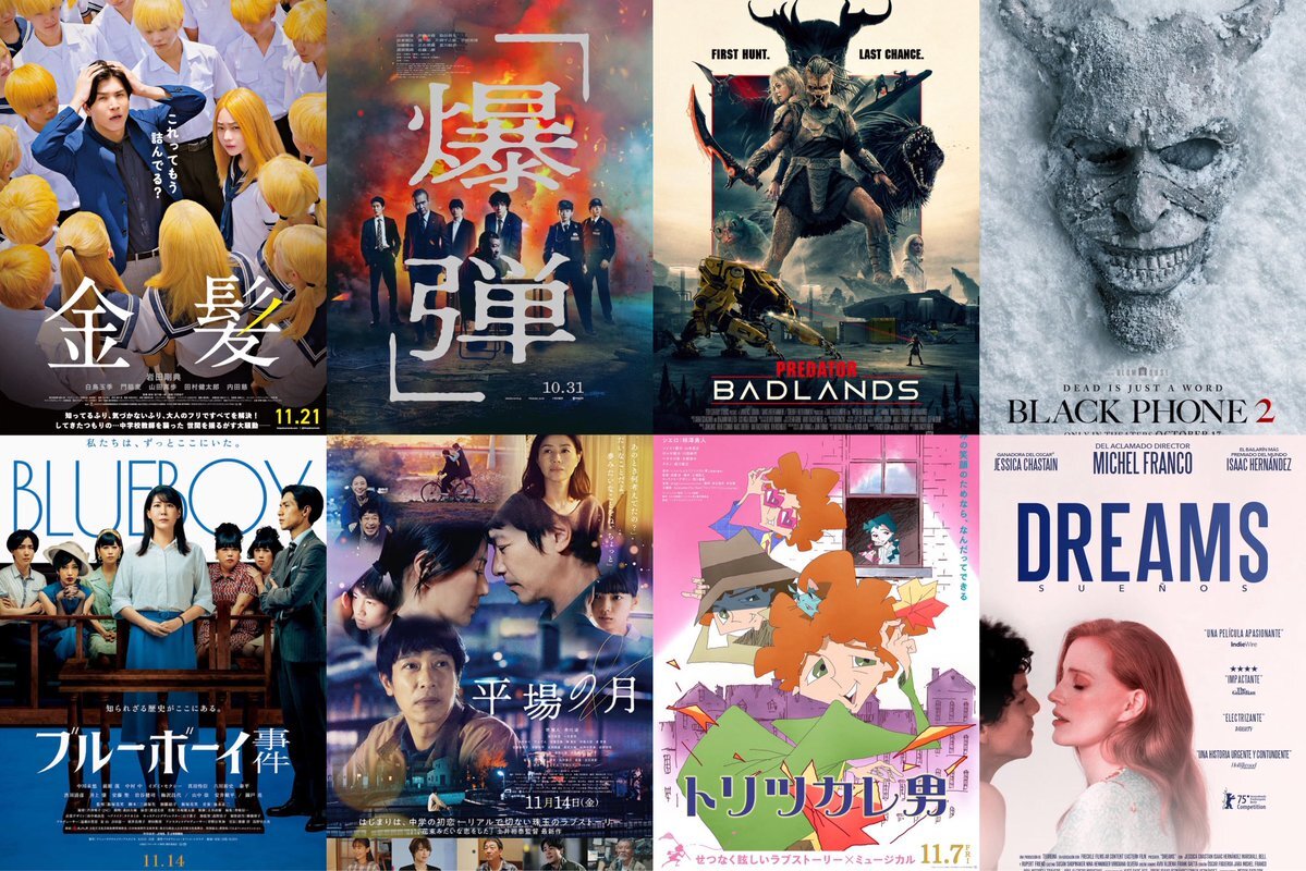 #2025年11月私が見た映画ランキング ①爆弾 ②平場の月 ③プレデター:バッドランド ④金髪 ⑤ブルーボーイ事件 ⑥Dreams TIFF-JP ⑦トリツカレ男 ⑧ブラックフォン 2 #2025年11月映画ランキング pic.x.com/M7K6ONbJVD