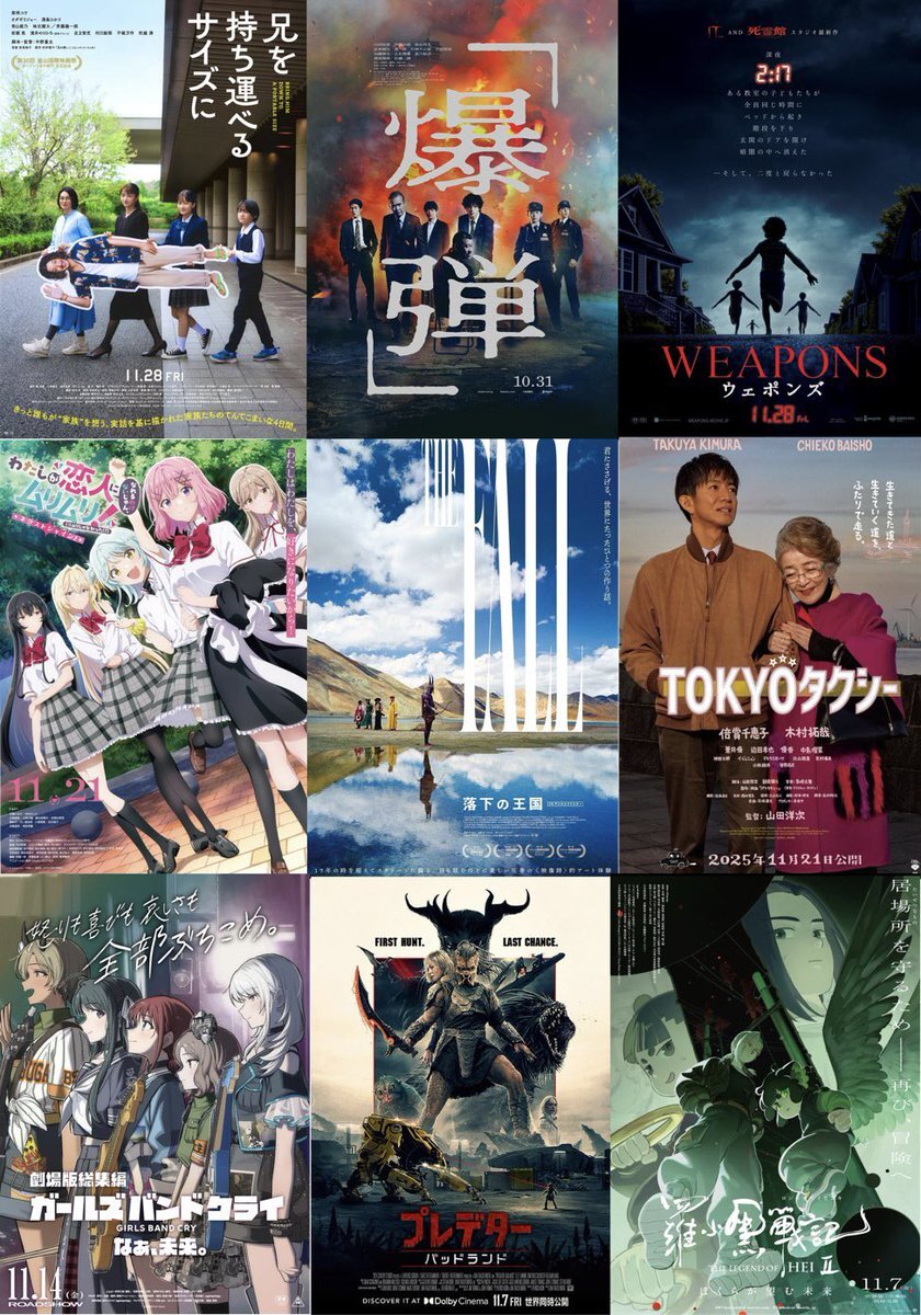 トリツカレ男 兄を持ち運べるサイズに 「爆弾」 WEPONS/ウェポンズ わたなれ:ネクストシャイン 落下の王国 TOKYOタクシー ガールズバンドクライ:なぁ、未来 プレデター:バッドランド 羅小黒戦記2-ぼくらが望む未来- #2025年11月映画ランキング pic.x.com/NjQRTZv6tN x.com/t_tinai/status…