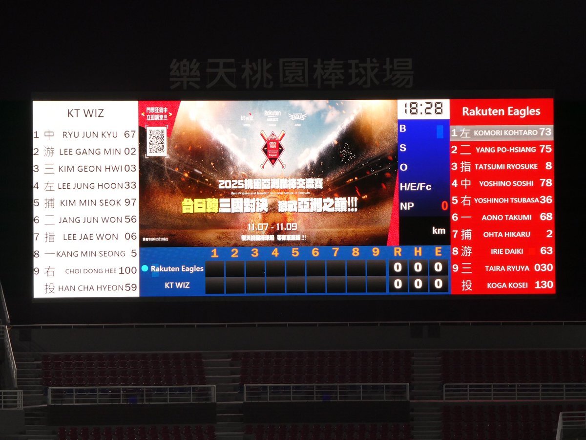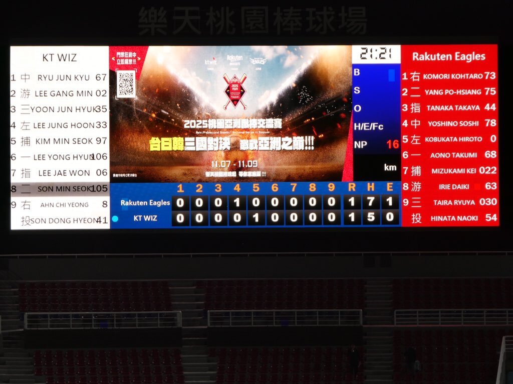 2025年11月7日(金曜日) 楽天イーグルス vs KTウィズ in 楽天桃園棒球場 ついに来ました!桃園球場🍑🏟️ ハマペン🐧2025年 現地観戦136試合目 楽天イーグルス通算 現地観戦1788試合 #2025桃園アジアプロ野球交流戦 pic.x.com/9972kY1Vbh