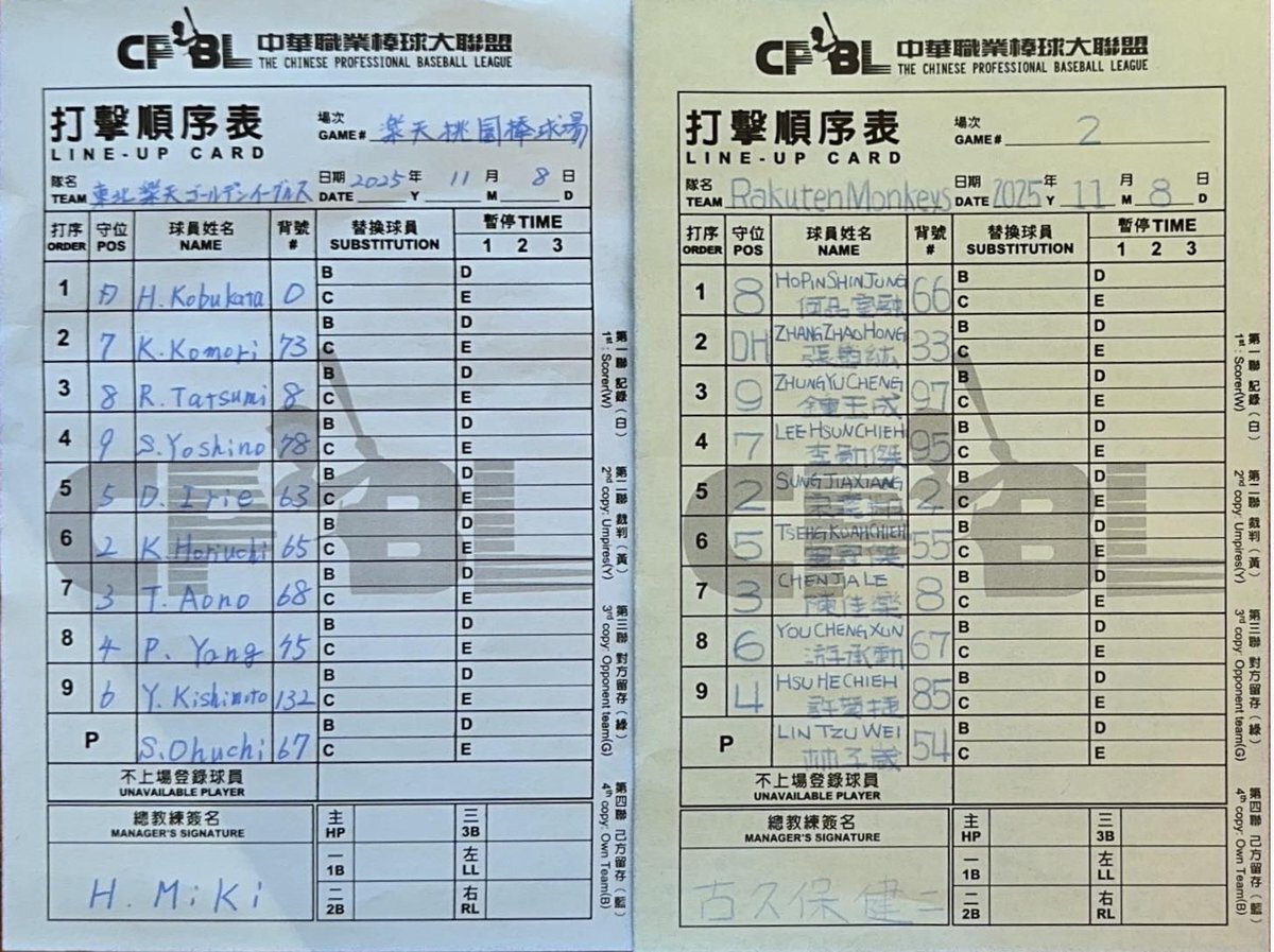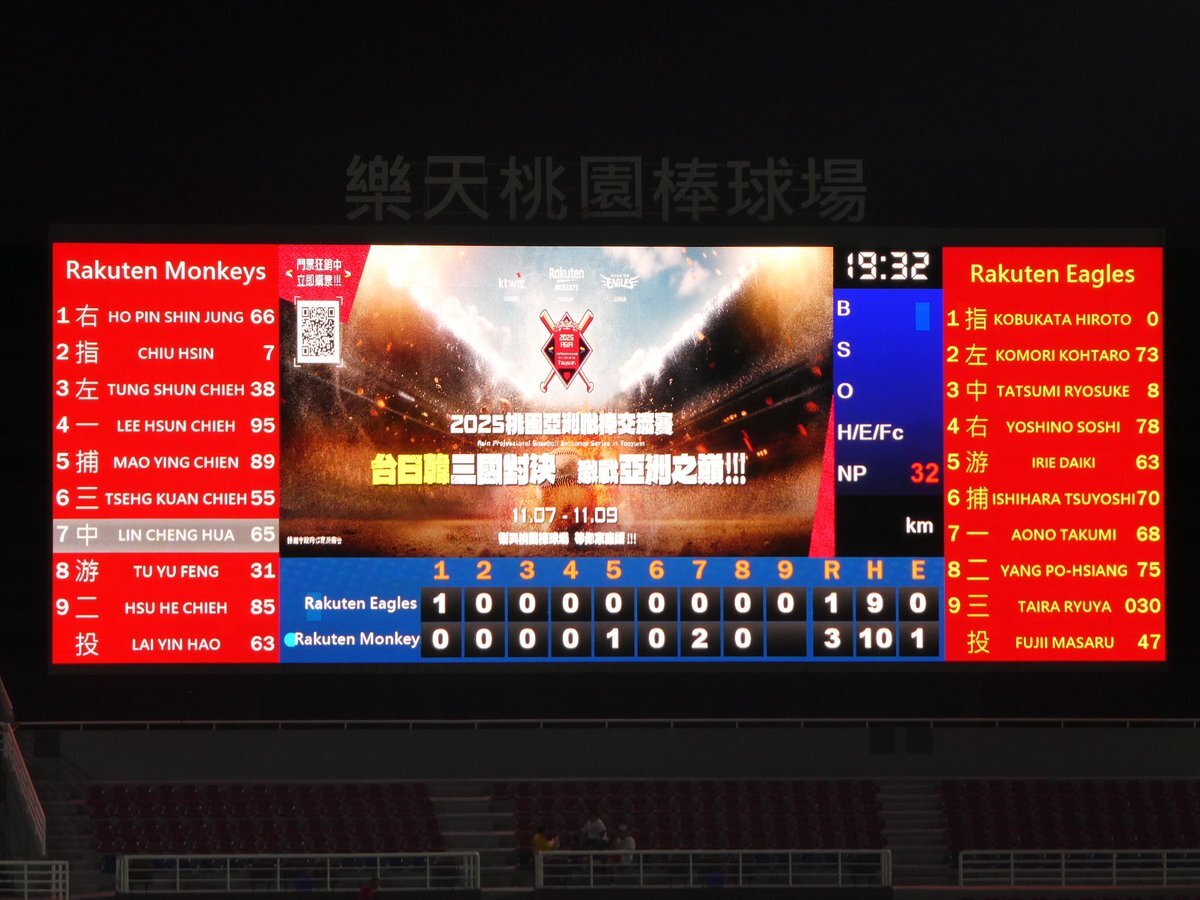 2025年11月8日(金曜日) 楽天イーグルス vs 楽天モンキーズ in 楽天桃園棒球場 楽天対決🦅vs🦍同じ楽天として負けられない!そして今年最後の観戦試合!137試合目、たくさん観に行ったなぁ🤣 ハマペン🐧2025年 現地観戦137試合目 楽天イーグルス通算 現地観戦1789試合 #2025桃園アジアプロ野球交流戦 pic.x.com/4mR0qe2D7C