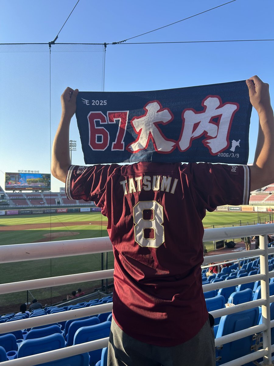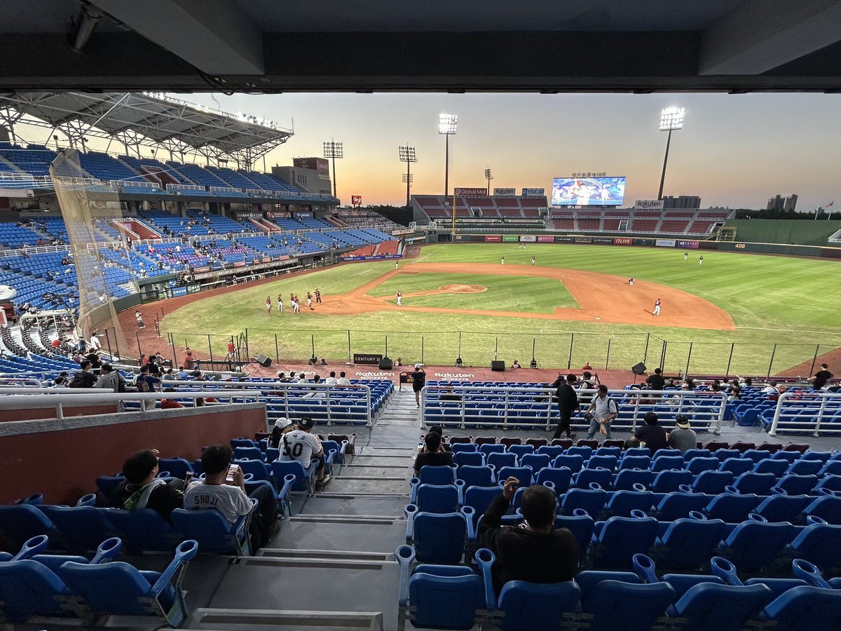 vs楽天モンキーズ戦 イーグルスの先発は、大内誠弥 くん 台湾モンキーズファンのみなさん、この足を高くあげる美しいフォームから力強い球を放る大内を覚えてください!✨ 桃園球場の雰囲気もわかる写真もあげておきます!遠くからでもわかる大内のシルエット #大内誠弥 #2025桃園アジアプロ野球交流戦 pic.x.com/wxlZ40JfOP