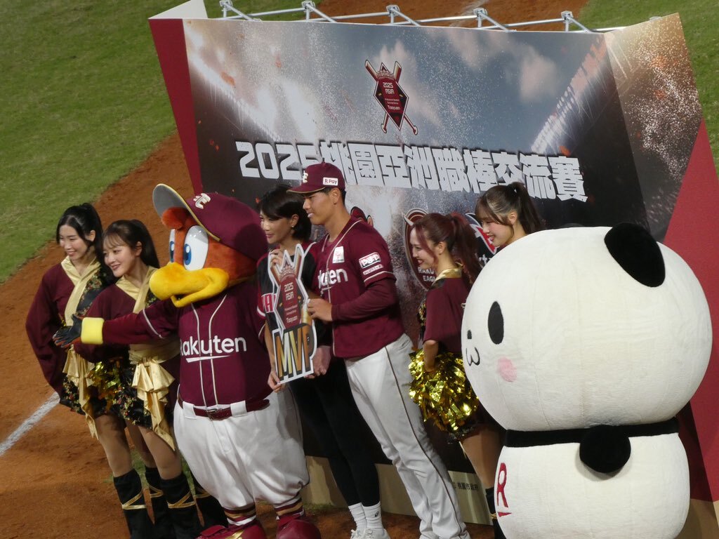 今日の試合のMVPに #古賀康誠 選手が選出されました! おめでとうございます✨ 「緊張したァ〜🥺」と終始ドキドキした様子の古賀選手を日本の皆さんにもお届け💌💭 #RakutenEagles #2025桃園アジアプロ野球交流戦 pic.x.com/82Mo8cr25s