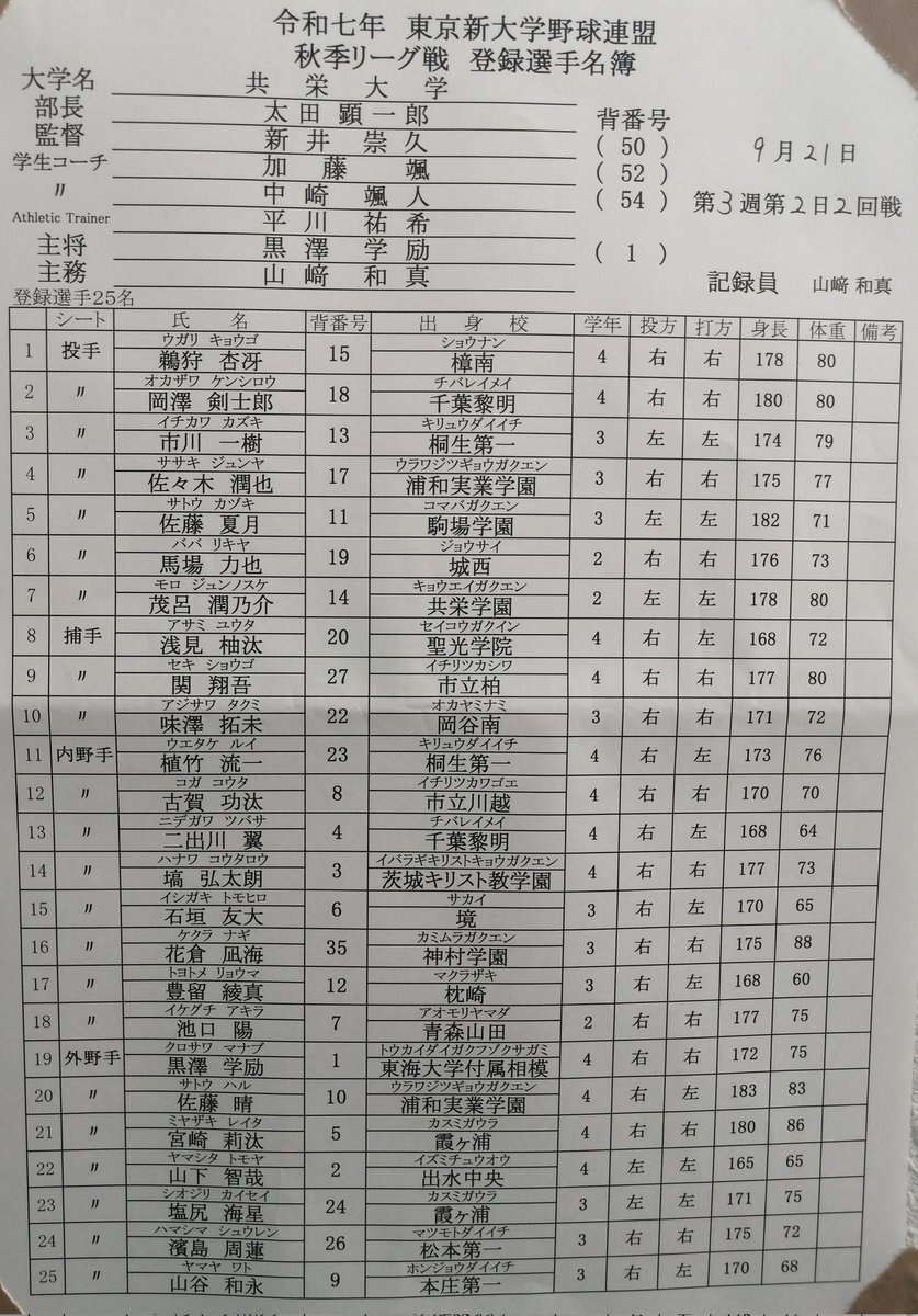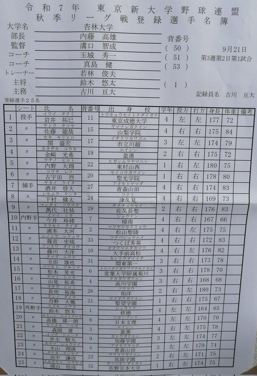 2025年9月21日(日) 🏟️#TOKIWAスタジアム龍ケ崎 #東京新大学野球 連盟1部 【第1試合】 #共栄大学(2勝2敗勝点1)×#杏林大学(3勝勝点1) 昨日雨の試合の中、接戦をモノにした杏林大悲願の初優勝へ共栄大から勝点獲得なるか 共栄大は2季ぶりの優勝に向け杏林大や創価大が連勝中の今は踏ん張り所 #2025観戦記 pic.x.com/oJGXv1ycHI