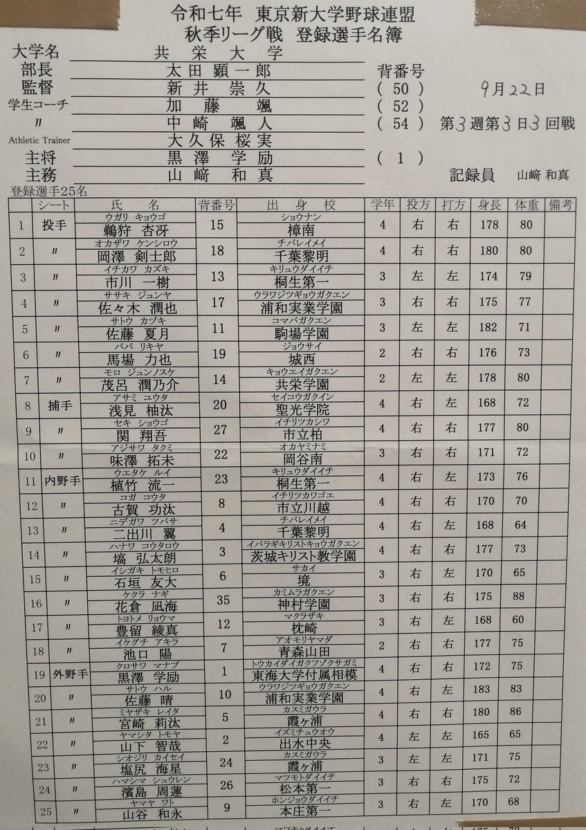 2025年9月22日(月) 🏟️#TOKIWAスタジアム龍ケ崎 #東京新大学野球 連盟1部 #共栄大学(3勝2敗勝点1)×#杏林大学(3勝1敗勝点1) 同カード1勝1敗で迎える第3戦 創価大学が開幕4連勝で順調に勝点獲得していっているだけに両校にとって優勝争い生き残りのためにも重要な試合になりそう #2025観戦記 pic.x.com/YmesDayBED