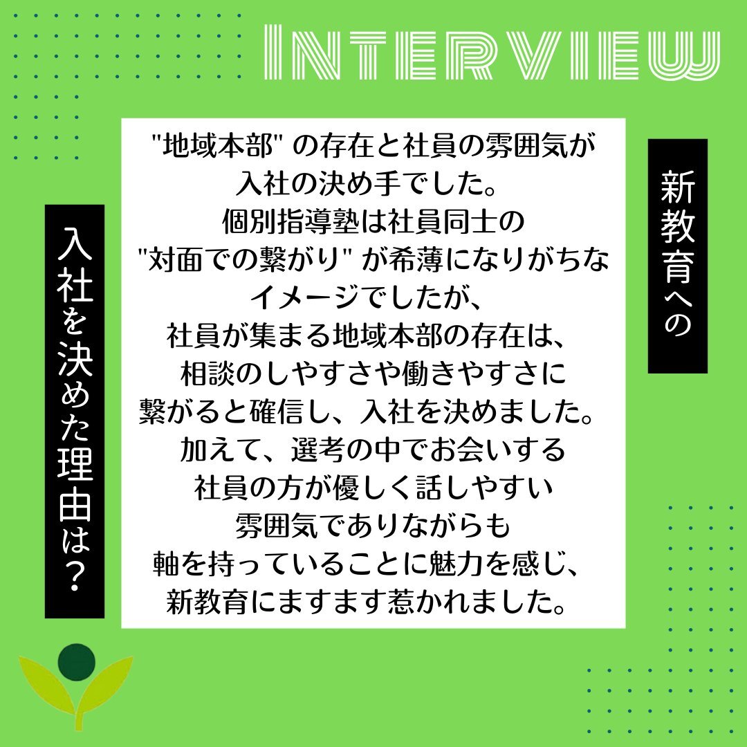˗ˏˋ新卒社員に聞いてみました🌱ˎˊ˗ 塾講師のアルバイト経験から 塾業界に興味を持ち、 就活サイトで新教育を知ってくれた 新卒社員のインタビューです📚🖊️ #26卒 #26卒と繋がりたい #27卒 #27卒と繋がりたい #早期選考 #教育 #採用 #新卒 #就活 #説明会 #インターン #リクナビ #マイナビ #採用情報 pic.x.com/6oLB2r7qbk