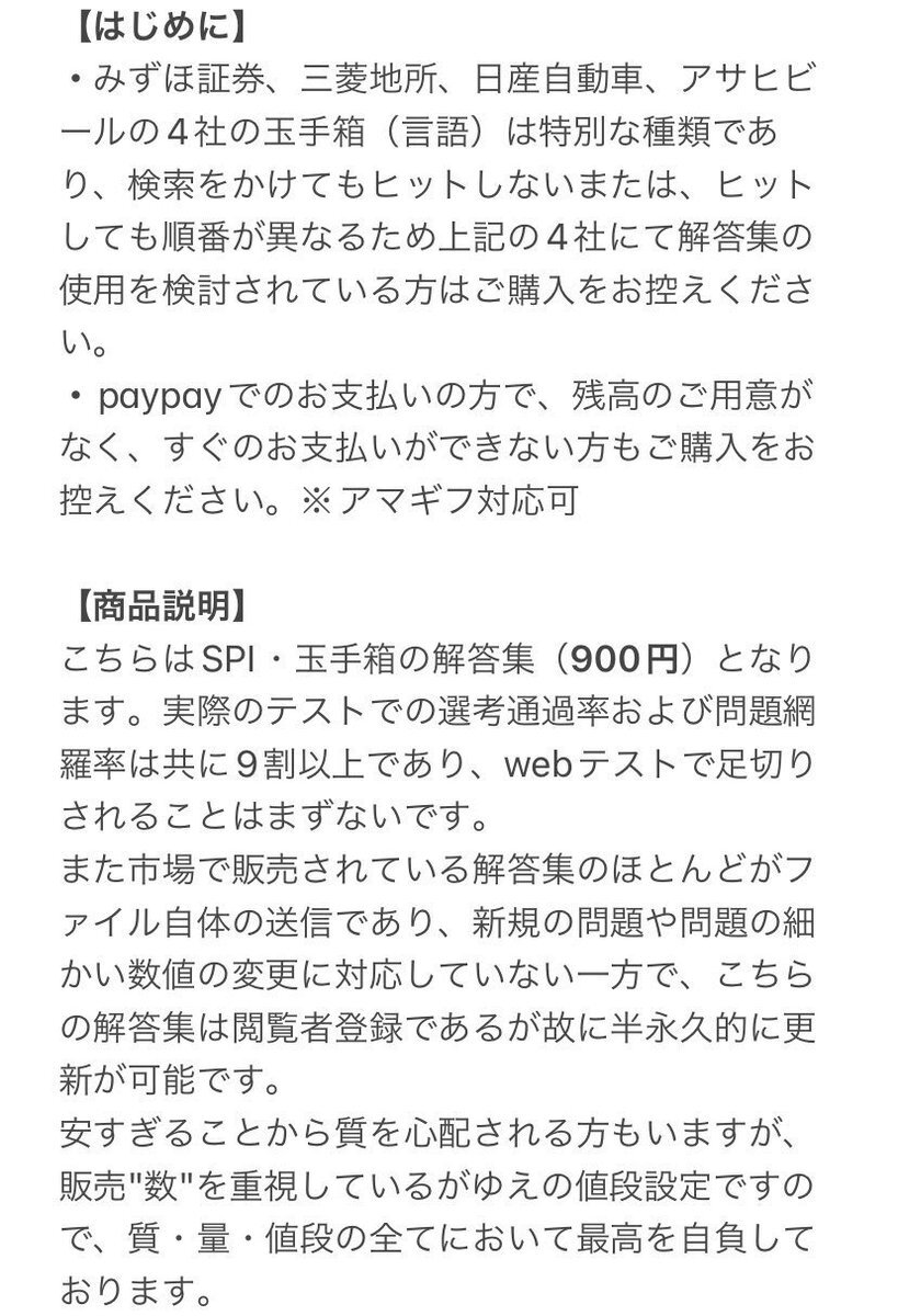 WEBテスト解答集ご購入ありがとうございます🙇♂️ 【2300部感謝価格】先着20部〆 ・7,000円→3,000円 残り6部 [即ダウンロード可]適性検査でお悩みの方 #WEBテスト解答集 #解答集 #就活 #玉手箱 #テストセンター #webテスティング #内定 #解答 #26卒 #27卒 #インターン #SPI #27卒と繋がりたい pic.x.com/EEjpnDoKPS x.com/9upj4/status/1…