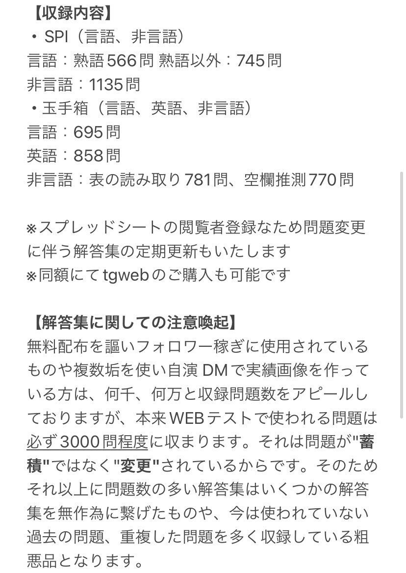 【最新27卒webテスト解答集】 🔥10万問以上収録🔥 SPI 玉手箱 GAB TG-WEB 全まとめ 700円 解答集で効率的に就活を進めていきましょう! #インターン #webテ #27卒と繋がりたい pic.x.com/ZyxfXBvyCn