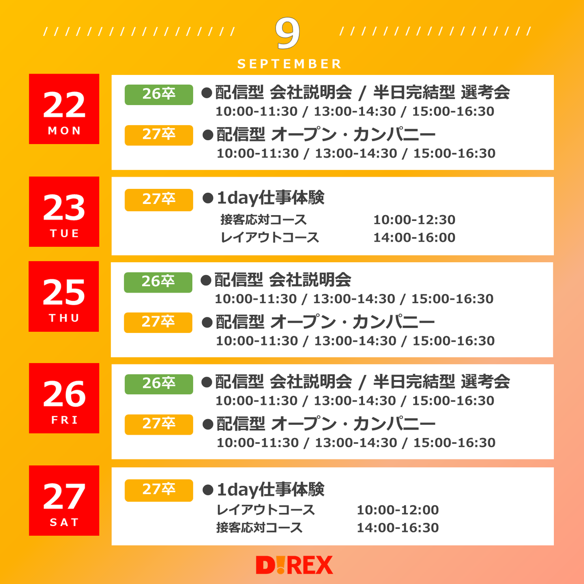 採用課Kです!今週のスケジュールをご案内します🎑 🌕マイナビ26卒 job.mynavi.jp/26/pc/corpinfo… 🌕マイナビ27卒 job.mynavi.jp/27/pc/corpinfo… 🌕リクナビ26卒 job.rikunabi.com/2026/company/r… 🌕自社予約ツール27卒 career-cloud.asia/s/qSERrM #会社説明会 #26卒採用 #27卒採用 #業界研究 #イベント pic.x.com/oWOWoe7mOt
