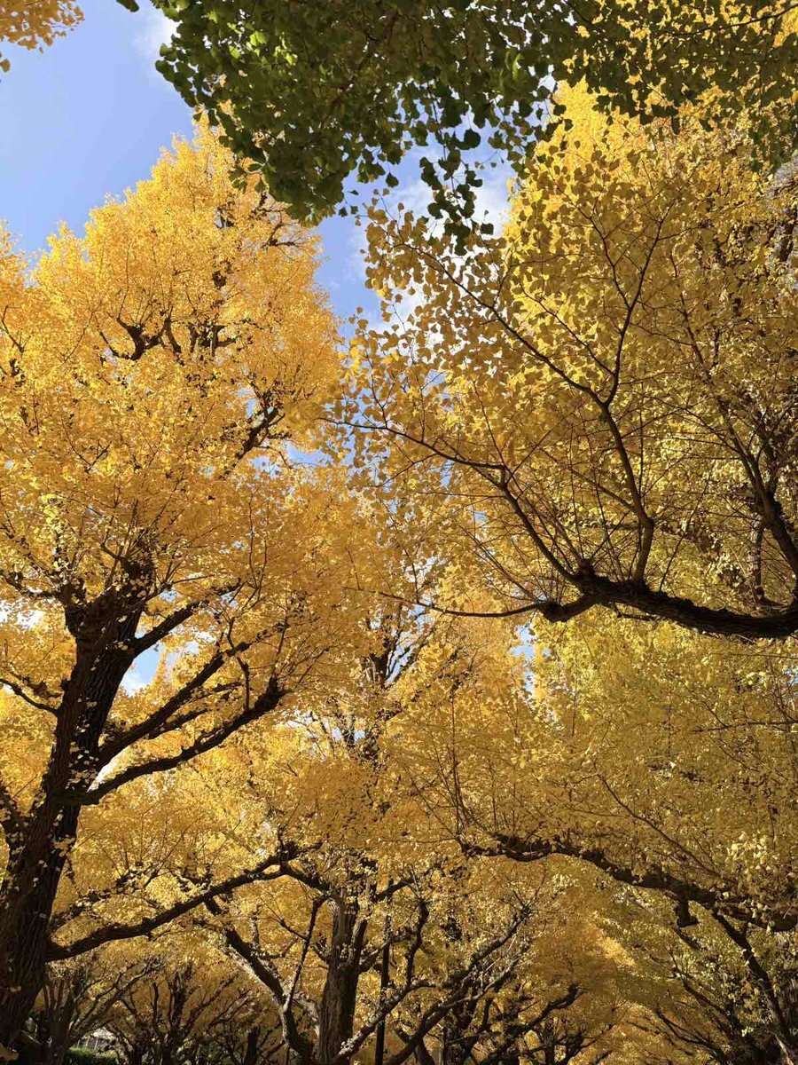 #50日後に色づく神宮の紅葉 Day9 今日の紅葉度:🍃2/5 1本とっても黄色い木がありました🍁 寒くなってきましたね〜鍋が食べたい! #神宮外苑 #秋の記録 #秋のお出かけスポット #イチョウ並木 pic.x.com/iisUtilu6x