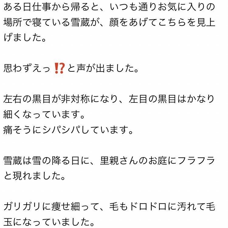 雪蔵の目が⁉️ ある日仕事から帰ると、いつも通りお気に入りの場所で寝ている雪蔵が、顔をあげてこちらを見上げました 思わずえっ⁉️と声が出ました 左右の黒目が非対称になり、左目の黒目はかなり細くなっています 詳細は写真に書いてます #保護猫 #老猫 #シニア猫 #看取りボランティア #60家 pic.x.com/6gjxi8h9r0