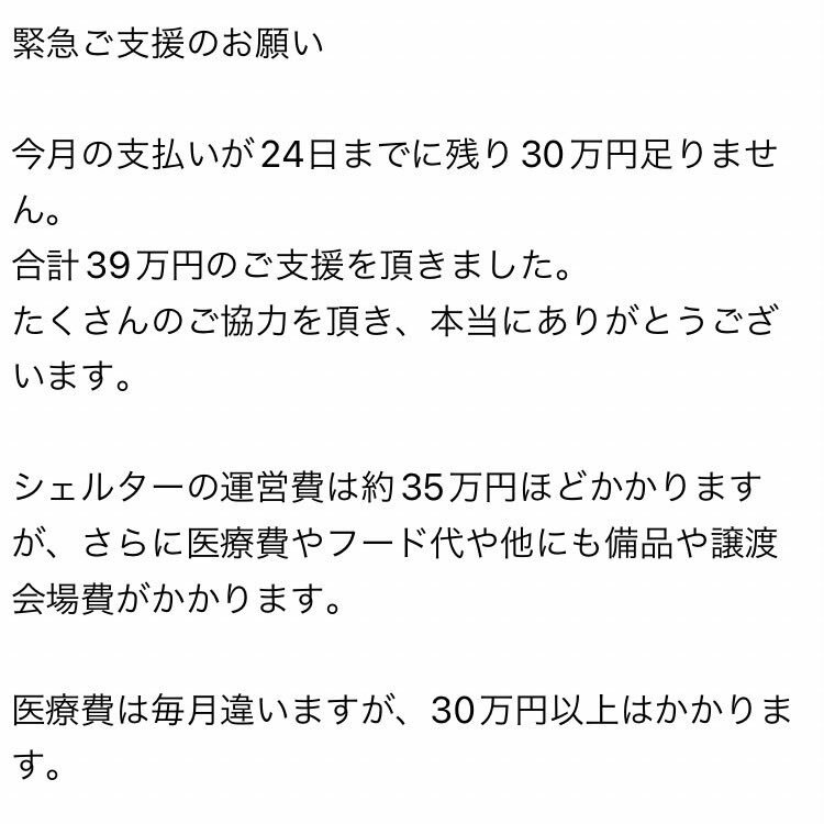 緊急ご支援のお願い 今月の支払いが24日までに残り30万円足りません 合計39万円のご支援を頂きました🙇♂️ たくさんのご協力を頂き、本当にありがとうございます🙇♂️ どうかできる範囲でご協力よろしくお願いいたします🙇♂️ #保護猫 #60家 pic.x.com/8op2AwQKIM