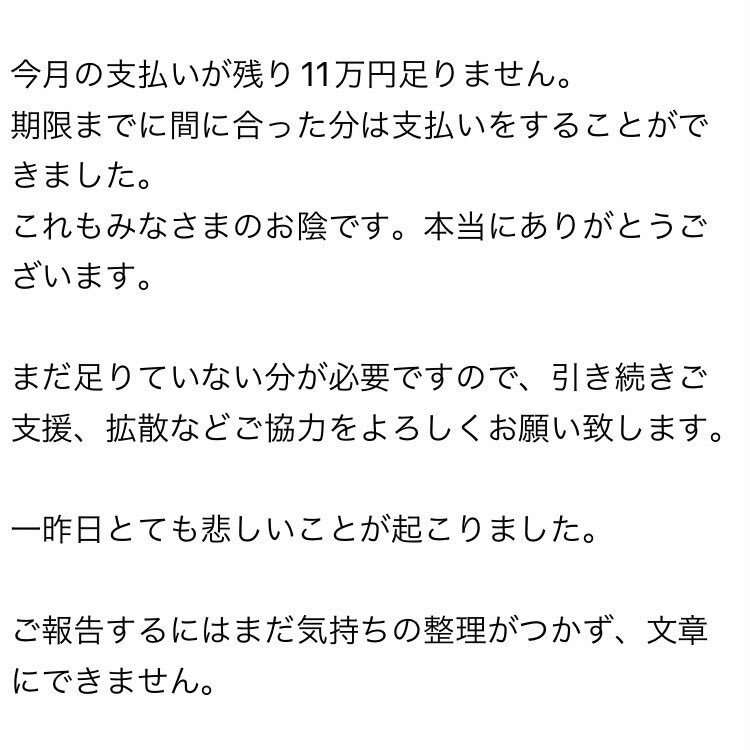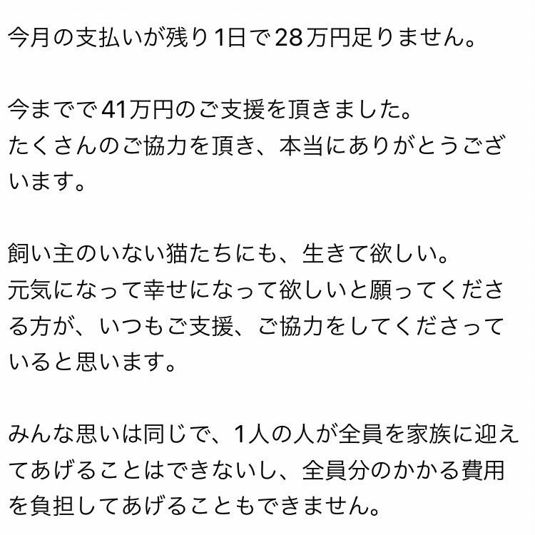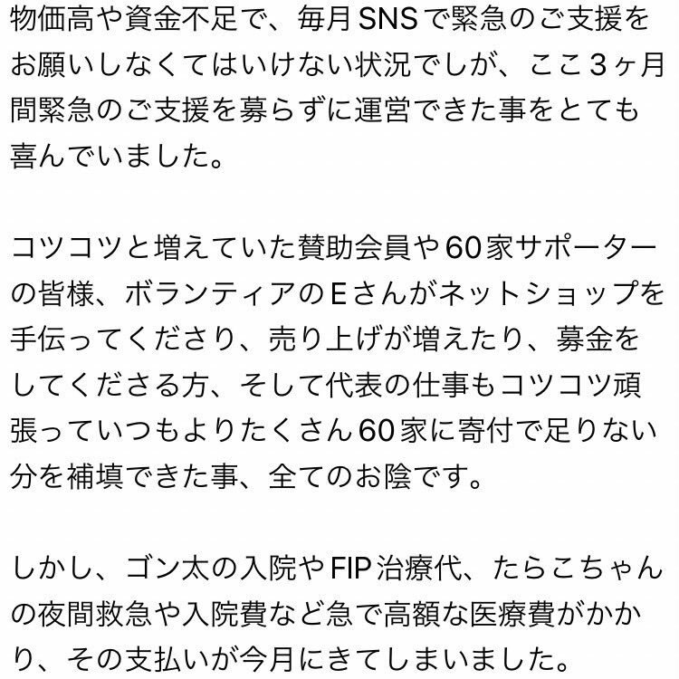 ご支援のお願い 今月の支払いが69万円足りません 物価高や資金不足で、毎月SNSで緊急のご支援をお願いしなくてはいけない状況でしが、ここ3ヶ月間緊急のご支援を募らずに運営できた事をとても喜んでいました 詳細は写真に書いてます どうかできる範囲でご協力宜しくお願い致します🙇 #保護猫 #60家 pic.x.com/OrH6QnRj1h