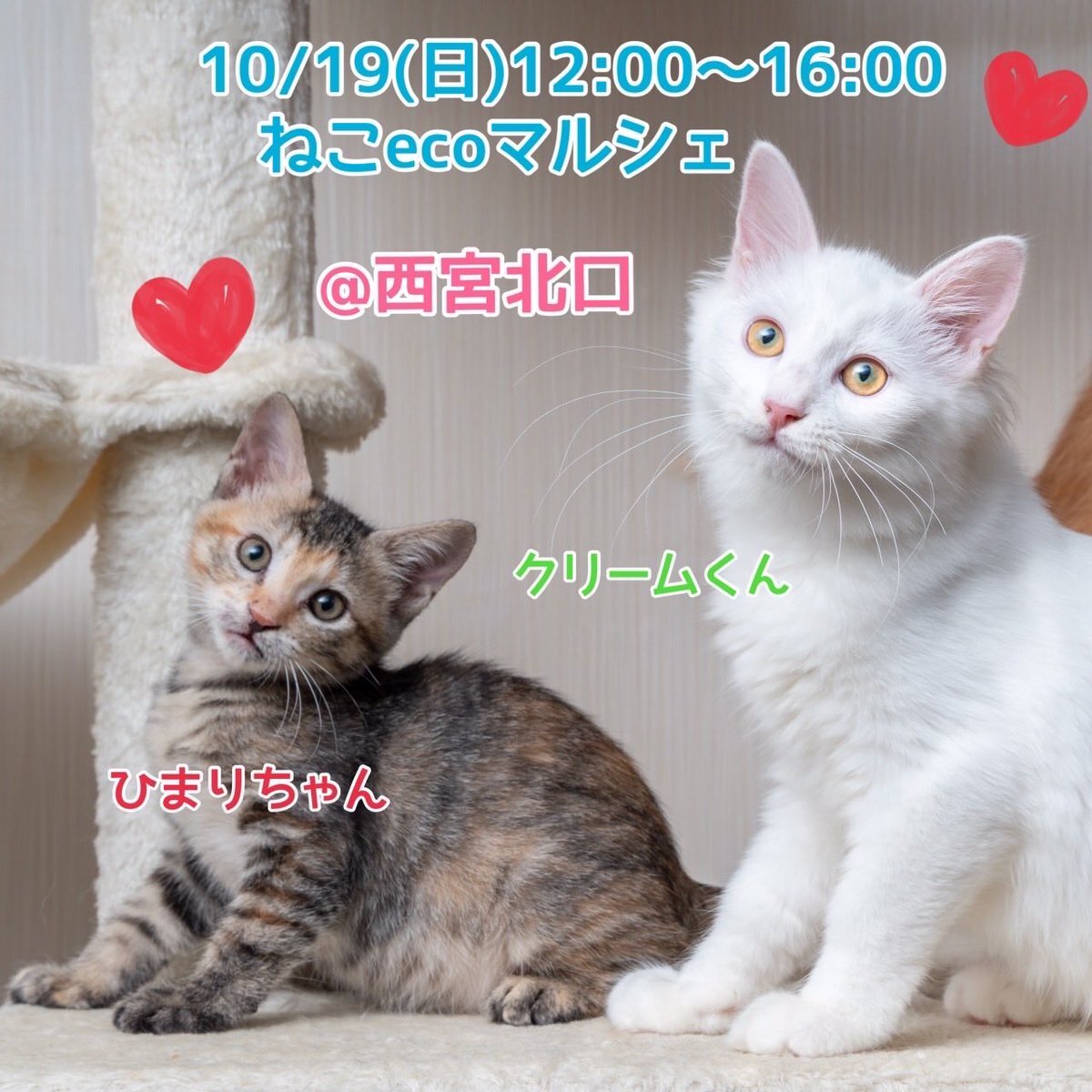 今週末10/19(日)は🍀ねこecoマルシェ in西宮北口🍀😸✨✨🍀 写真で参加猫のご紹介です♪ 譲渡会では 総勢35頭の猫たちが参加します❤️ 是非お越し下さい😸 neko-satooya.com #保護猫 #譲渡会 #子猫 #西宮 #ねこecoマルシェ #60家 pic.x.com/A6Lw3cZN38