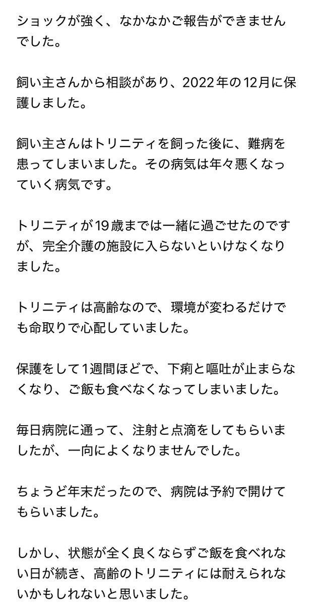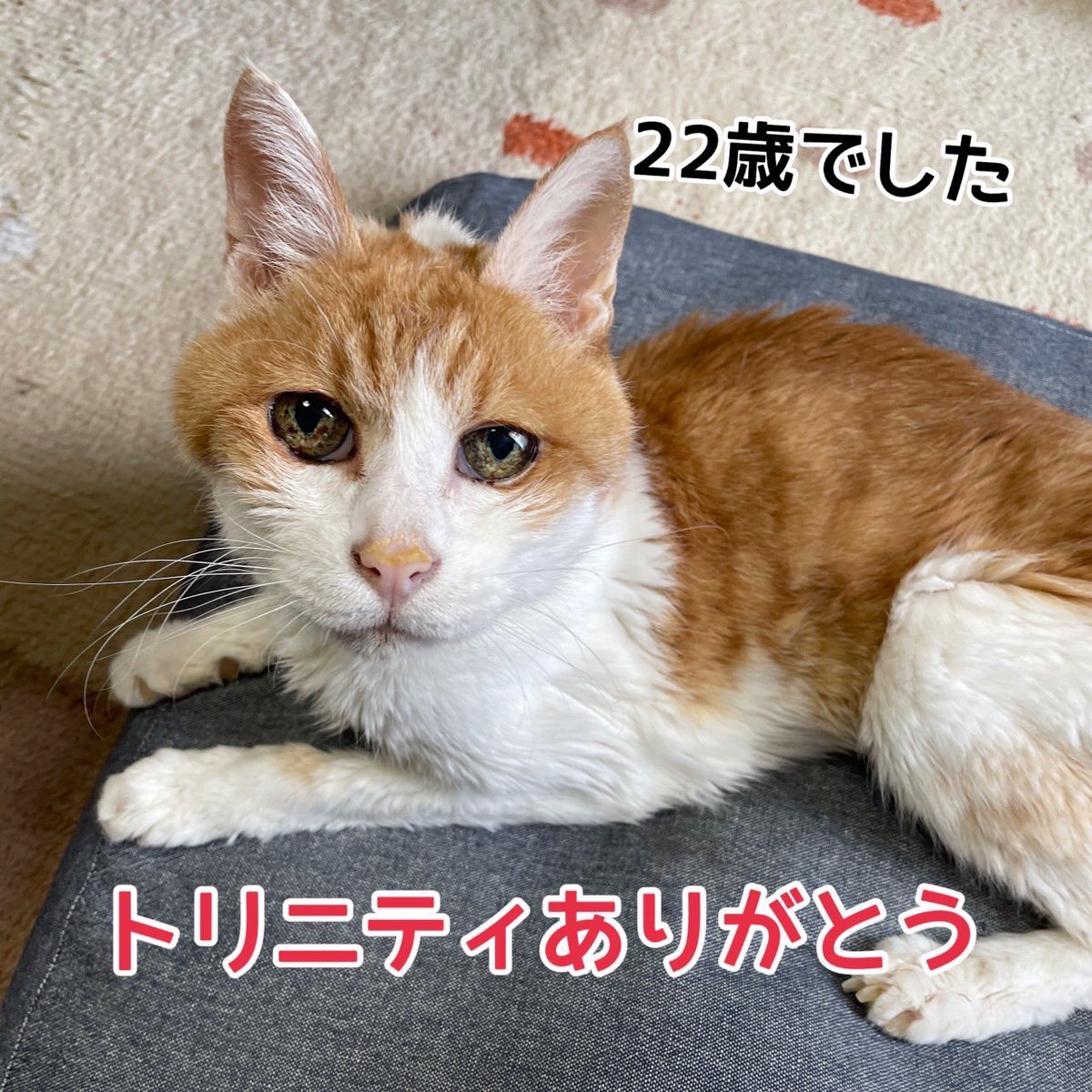 22歳のトリニティ急逝 ショックが強く、なかなかご報告ができませんでした 飼い主さんから相談があり、2022年の12月に保護しました 詳細は写真に書いてます トリニティ本当にありがとう。 また会う日まで。 またね。 #保護猫 #老猫 #シニア猫 #看取りボランティア #60家 pic.x.com/8b8pyaD9Yq