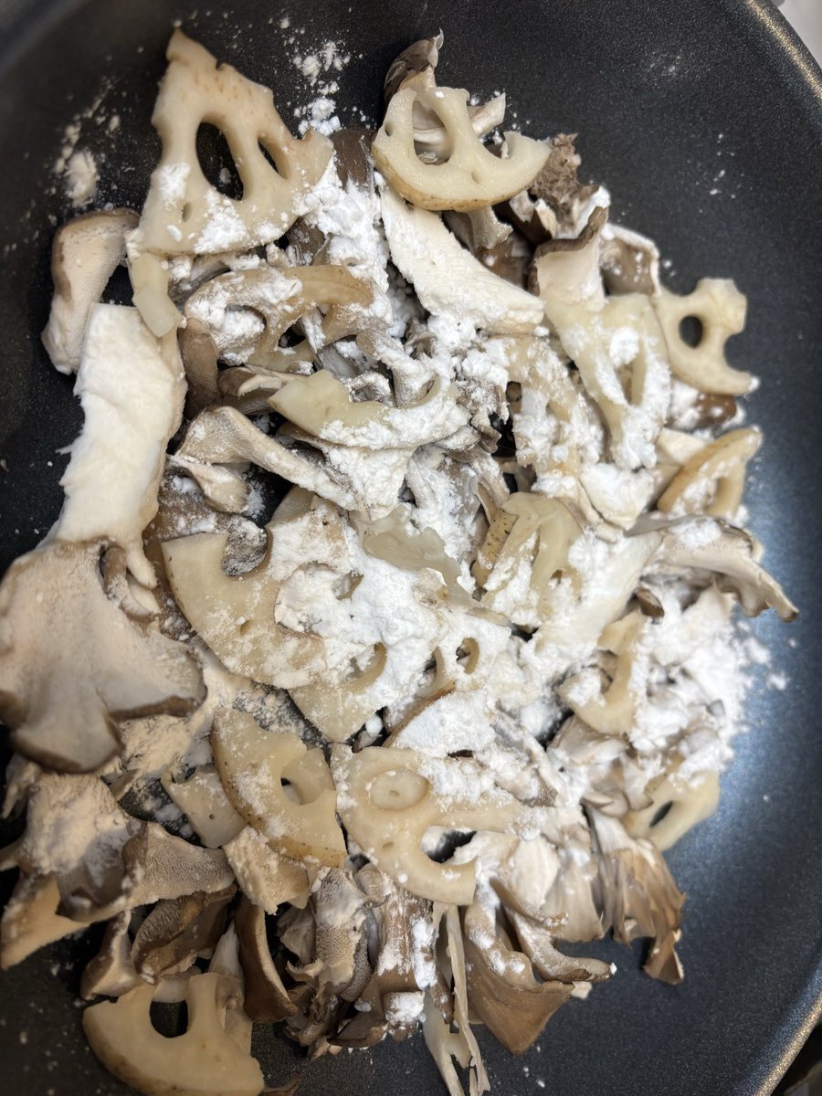 おはよ🍀*゜ #71105おは戦🌊DY 豚と濃い濃い舞茸の手焼き ほっくりさつまいもの大学いも風 美味しかったのだけど いつもの おうちでもう一回の レシピがなく残念😭 フライパンに舞茸とレンコンを入れて片栗粉をまぶすのは 意外なやり方だった あとから油を足して 強火で揚げ焼きにする pic.x.com/rN8mC4sbHe