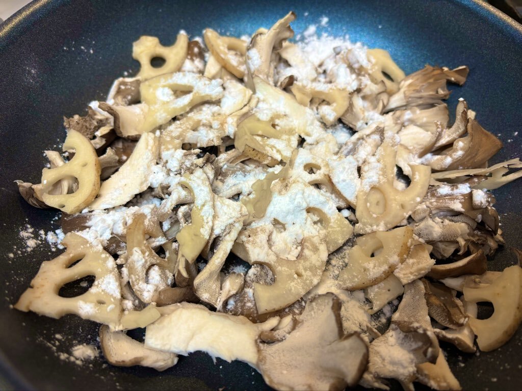 おはよ🍀*゜ #71105おは戦🌊DY 豚と濃い濃い舞茸の手焼き ほっくりさつまいもの大学いも風 美味しかったのだけど いつもの おうちでもう一回の レシピがなく残念😭 フライパンに舞茸とレンコンを入れて片栗粉をまぶすのは 意外なやり方だった あとから油を足して 強火で揚げ焼きにする pic.x.com/EeeqfJjAaX