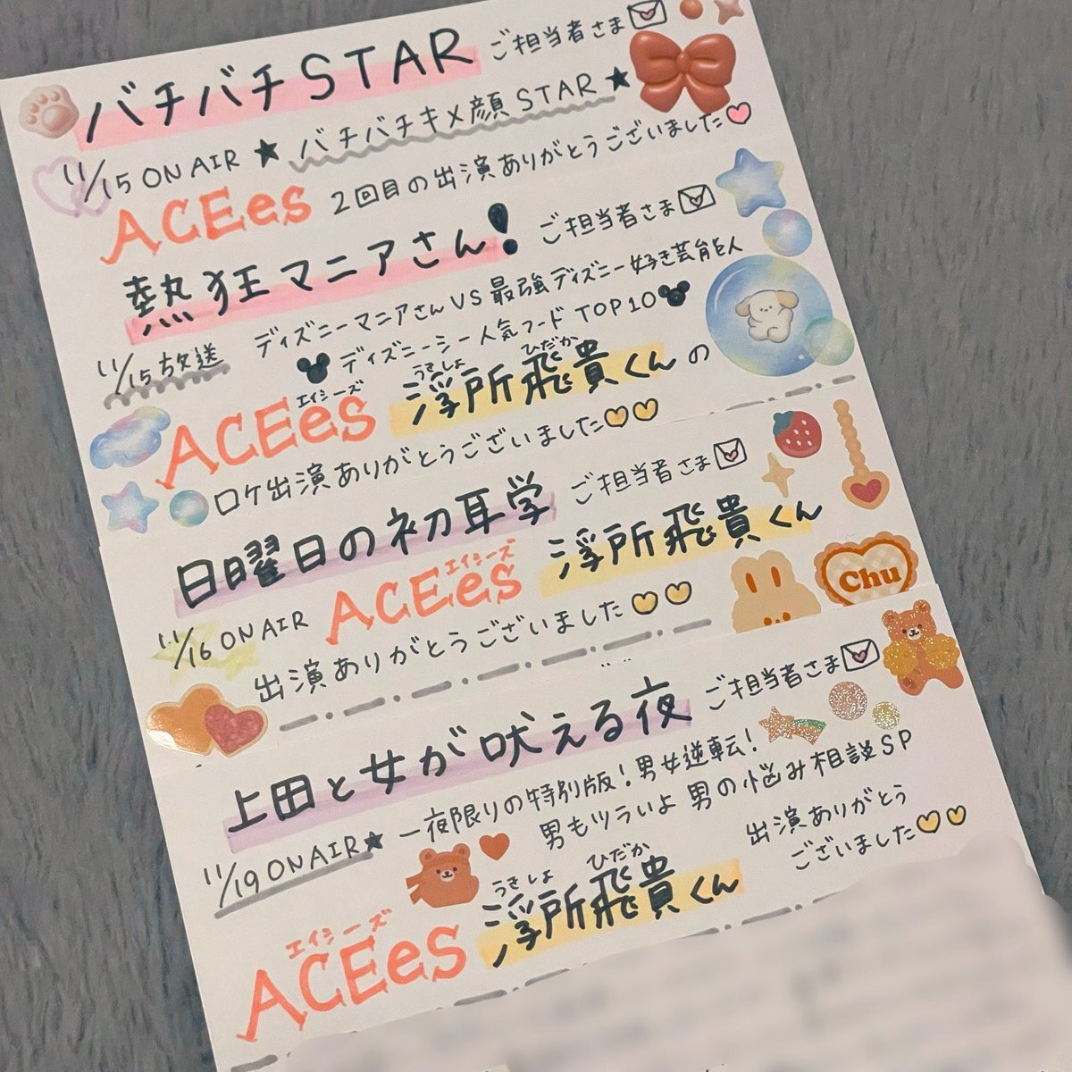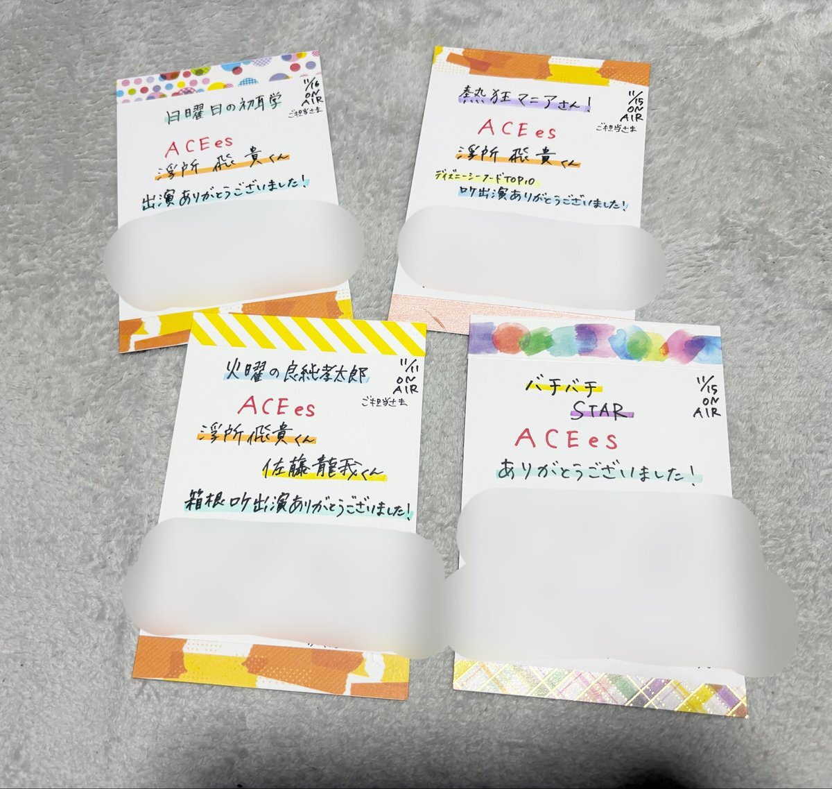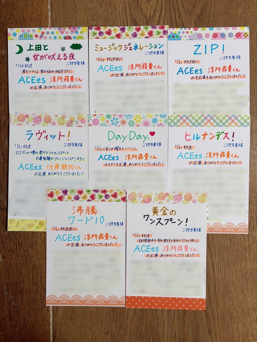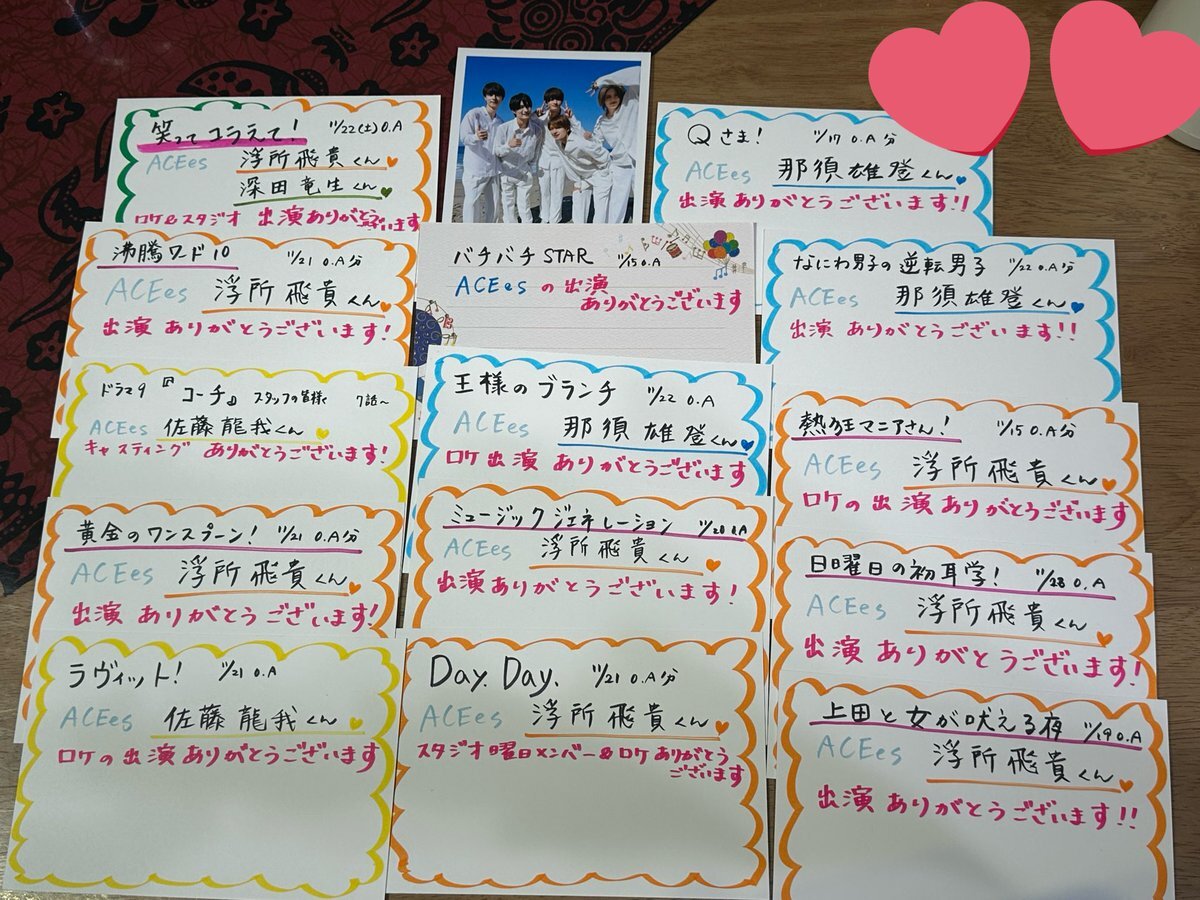 #ACEesハガキ部 ハガキ書いたよ! テレビ出演分だけ 雑誌類はまた今度〜😅 pic.x.com/sEiUNdjUVL
