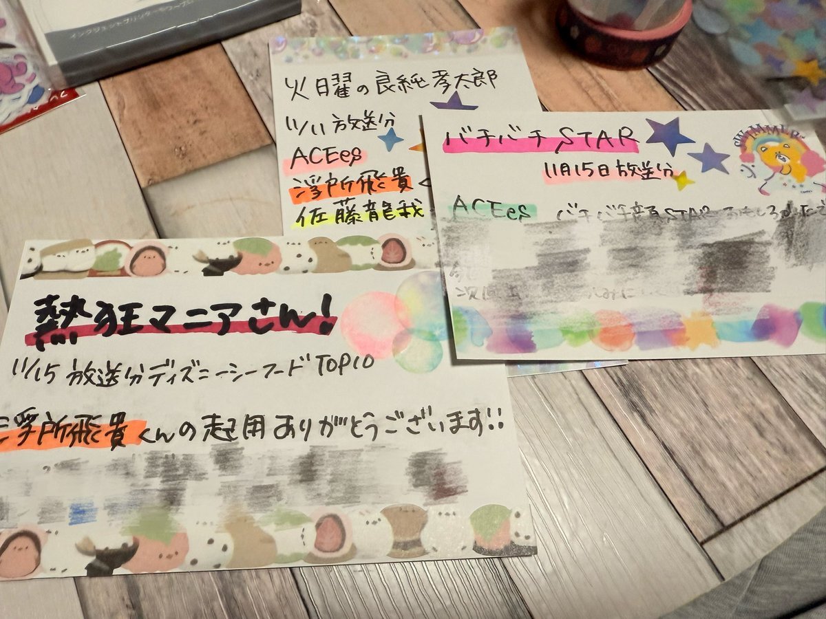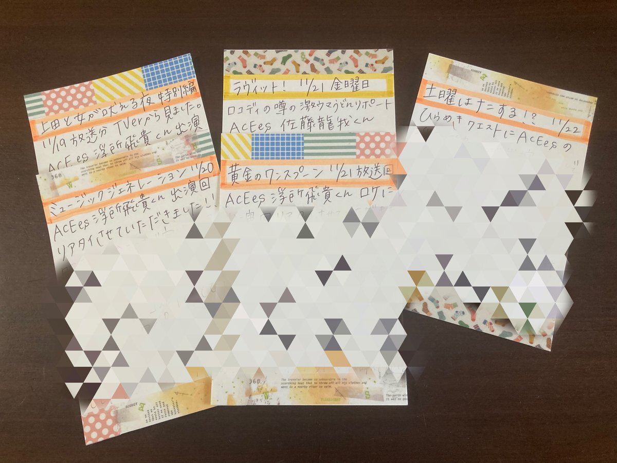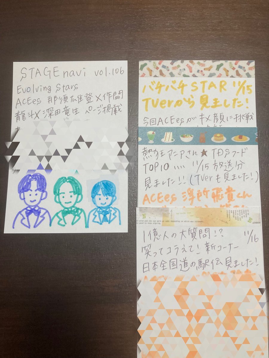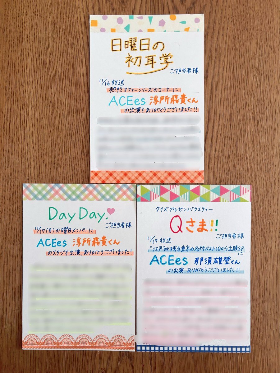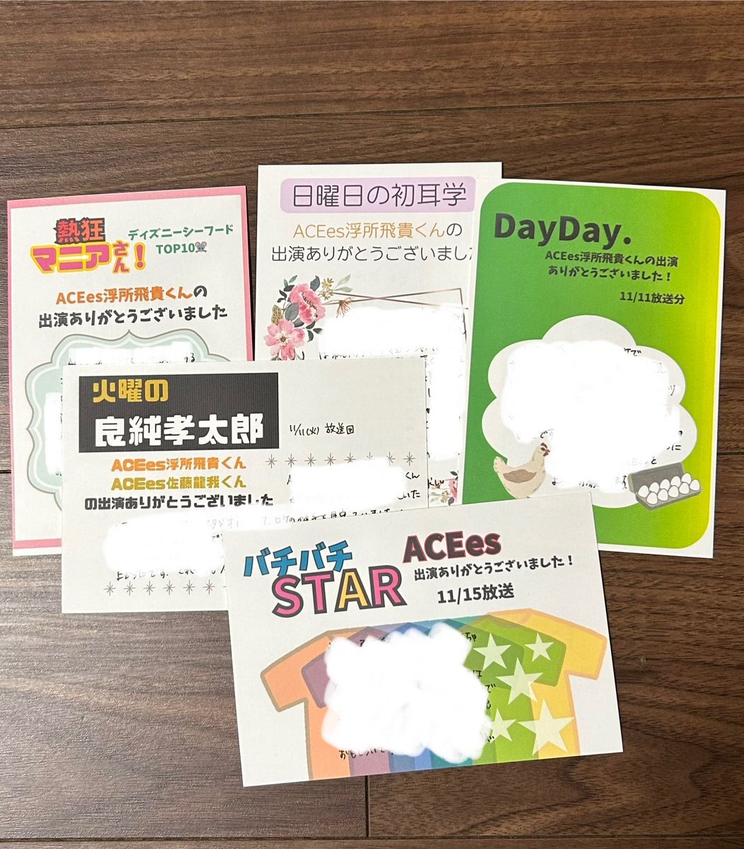 #ACEesハガキ部 ハガキ書いたよ! テレビ出演分だけ 雑誌類はまた今度〜😅 pic.x.com/sEiUNdjUVL