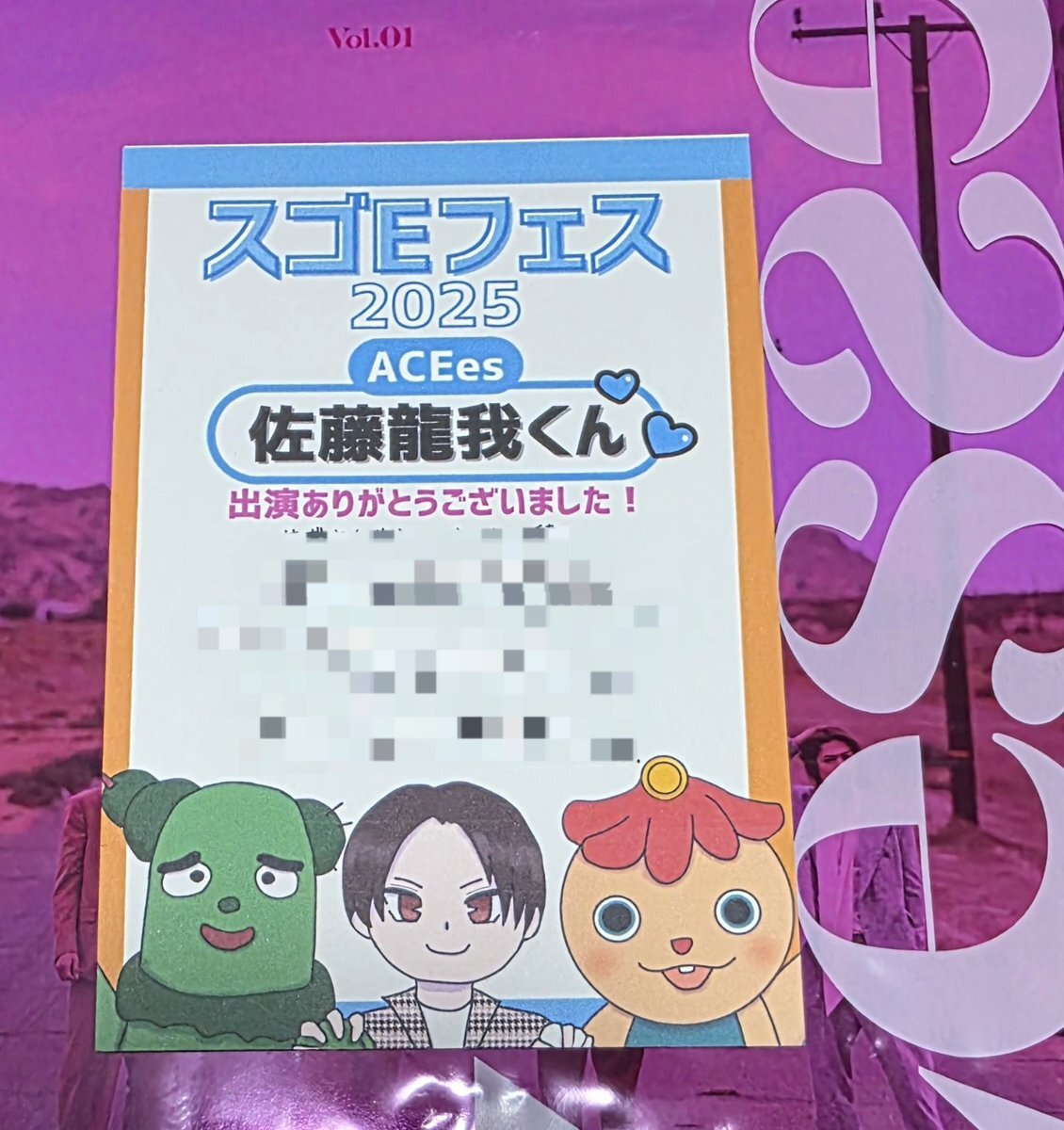 #ACEesハガキ部 スゴEフェスの龍我くんかわEだった🌵👦🏻♥️