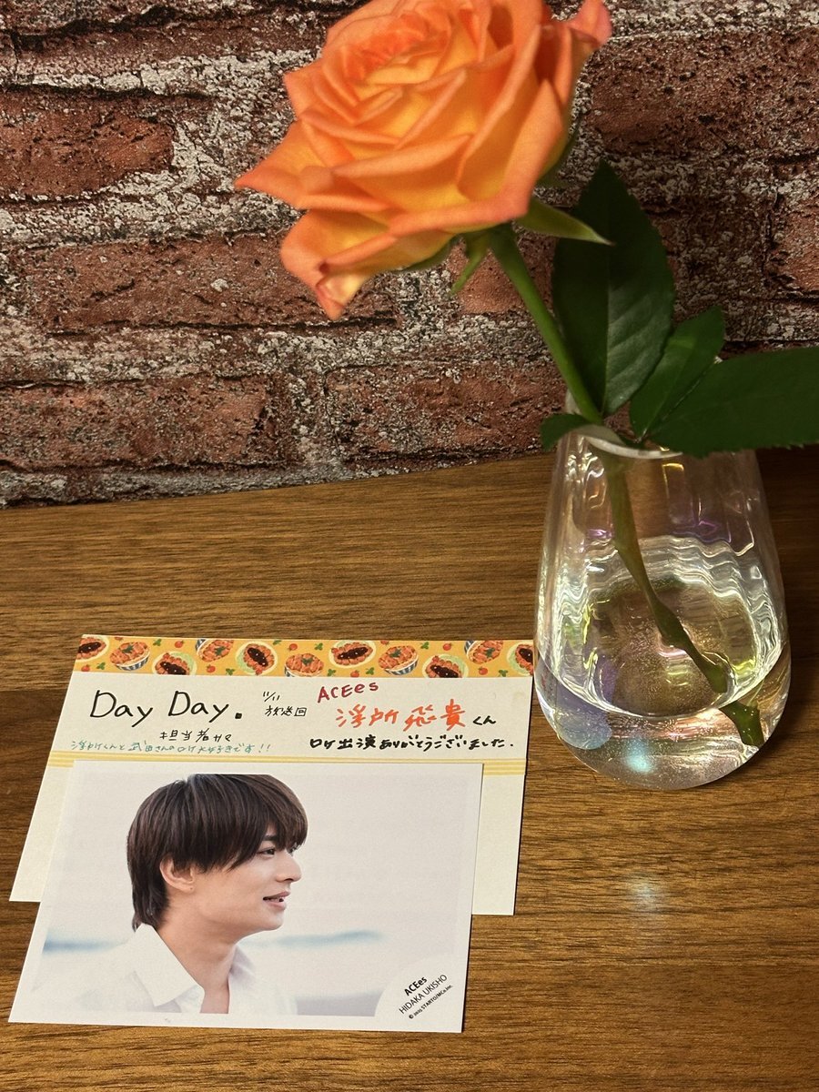 昨日 #DayDay 様だけ見られたので取り急ぎハガキ書い投函しました 明日深夜の深田くんとEテレSP龍我くんと池上彰さん火曜の〰️さんにに葉書出します いただいた薔薇と一緒に #ACEesハガキ部 pic.x.com/0tTU4yMXHx