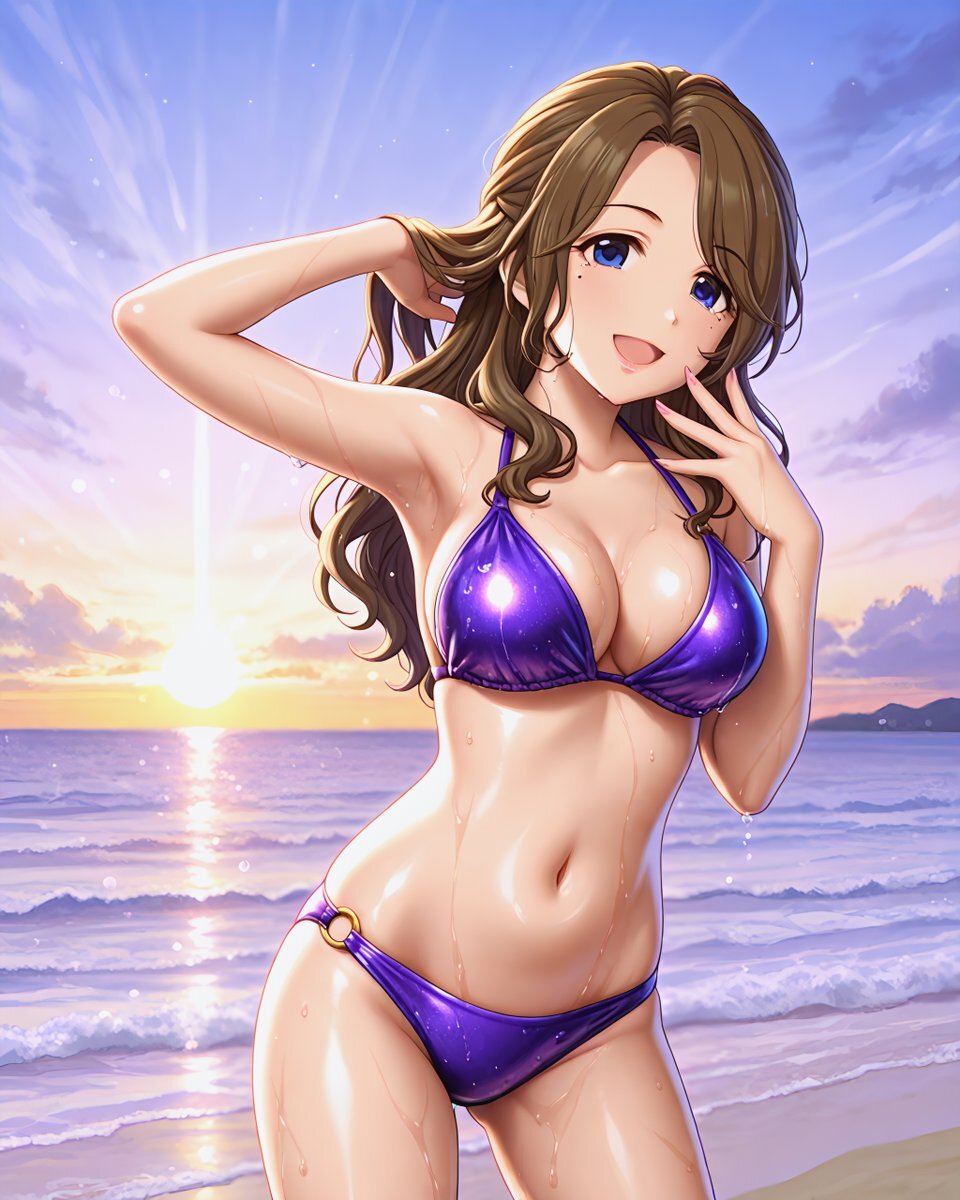 彩華さんはぴばー!! その3 #AIお絵かき #岸部彩華生誕祭2025 #岸部彩華誕生祭2025 #岸辺彩華 水着グラビアです なんでか私の環境だとほくろが逆につくので 右目の下についてるのを探すのが大変だったり あと、今回はあんまりひねり無しです(? pic.x.com/dugSGsZwdX