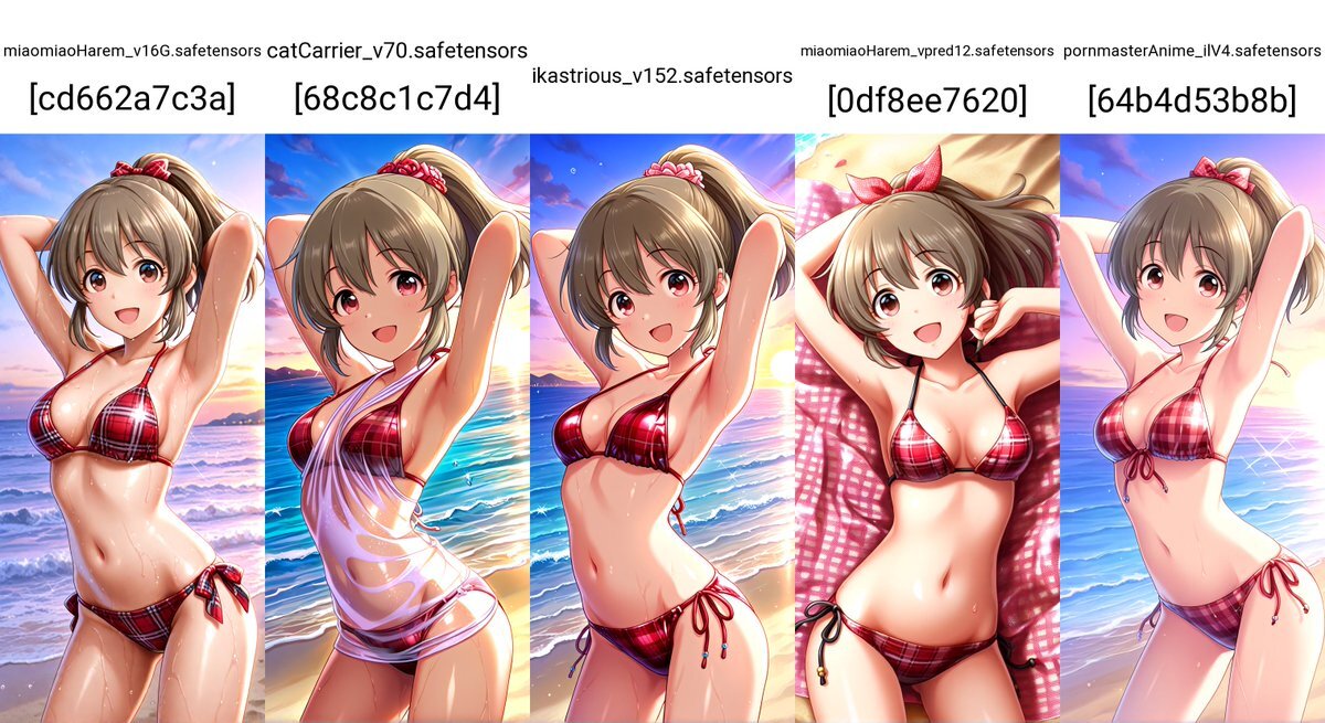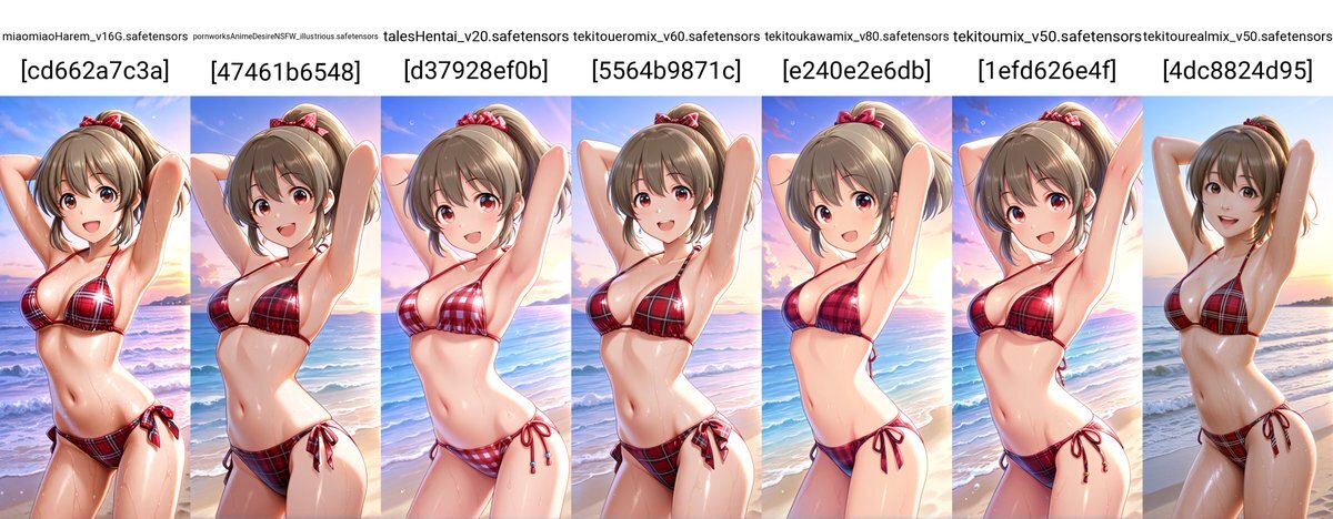 #AIお絵かき #堀裕子 毎度おなじみ(? なんか checkpoint 色々試してみたくなったので 比較用なのでいつものは各絵の左端です まだ変える気は無いけど、結構他のもいいのあるなぁ… pic.x.com/7gzMTpiQiq