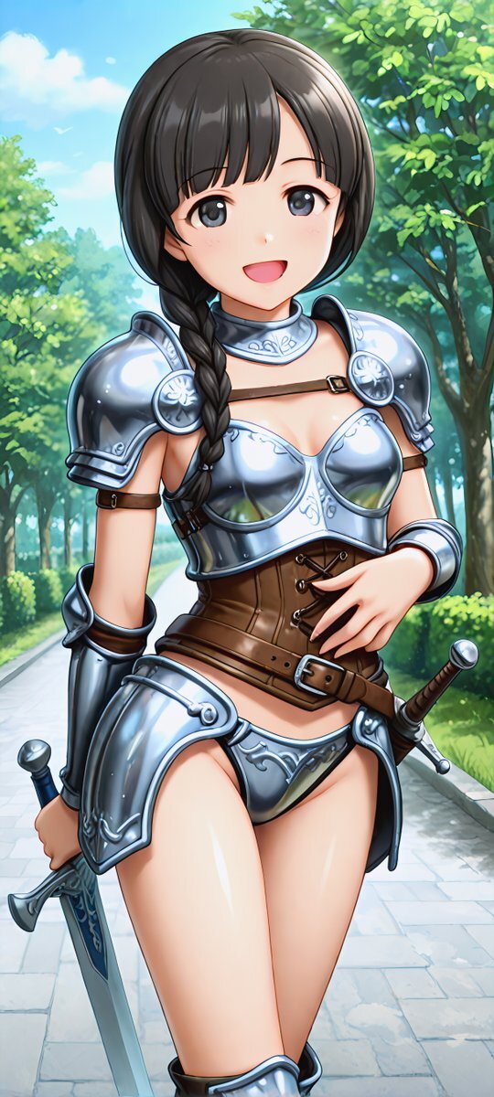 #AIお絵かき #氏家むつみ 別方向(何 先の紗南ちゃんが大丈夫だったようなので ビキニアーマーに色々付けてみた(? 冒険者ということでむっちゃんを ただ…剥き身の剣はなんともならなかったなぁ… pic.x.com/HXTjGMTt4s