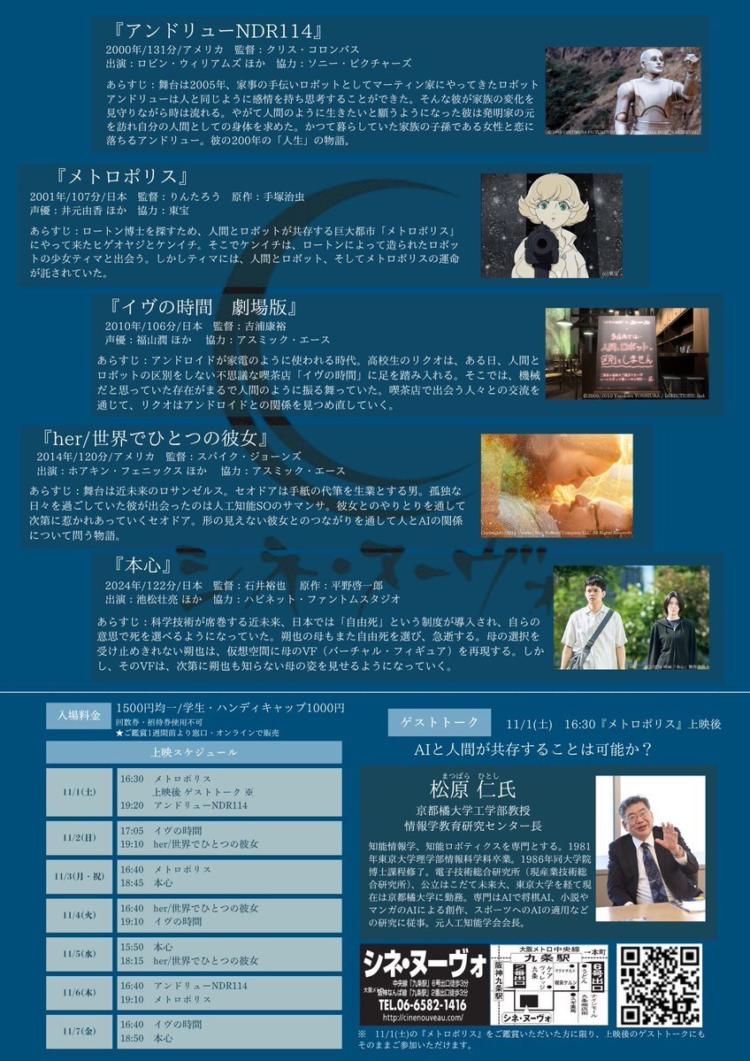 \✨情報解禁✨/ ──AIと我々の未来を目撃せよ 『AIとの共生〜共に描く、次の世界〜』特集上映 🗓2025年11月1日 〜11月7日 📍会場▷▶シネ・ヌーヴォ 初日は松原仁さんによるトークショーも実施! 立命館大学とシネ・ヌーヴォによる共同主催 乞うご期待! #AIとの共生 pic.x.com/YS0AfAR3TT