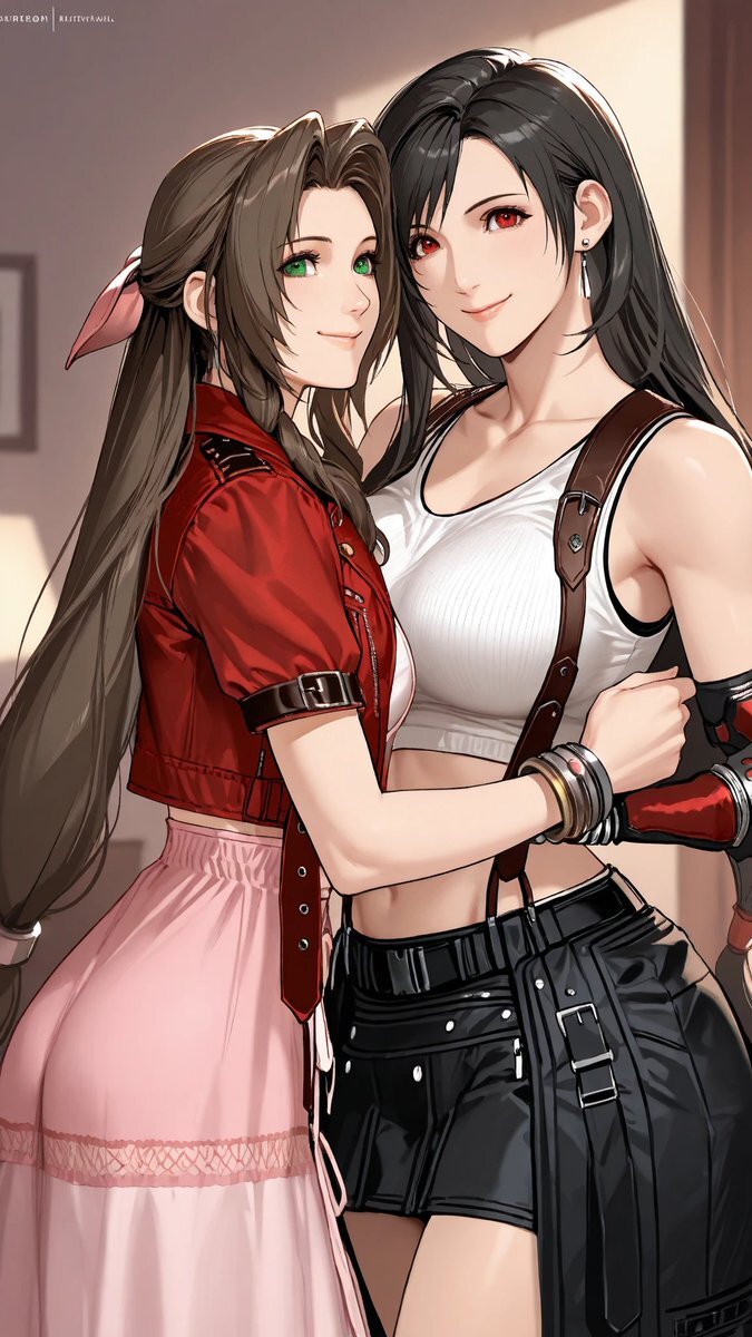 ティファ&エアリスできたー なんかすごい密着してるのと、ティファがちょっとお姉さんがで過ぎている気がする。 #エアリス・ゲインズブール #ティファ・ロックハート #FF7 #AIイラスト大好きさんと繋がりたい pic.x.com/xcNJTvhtFh