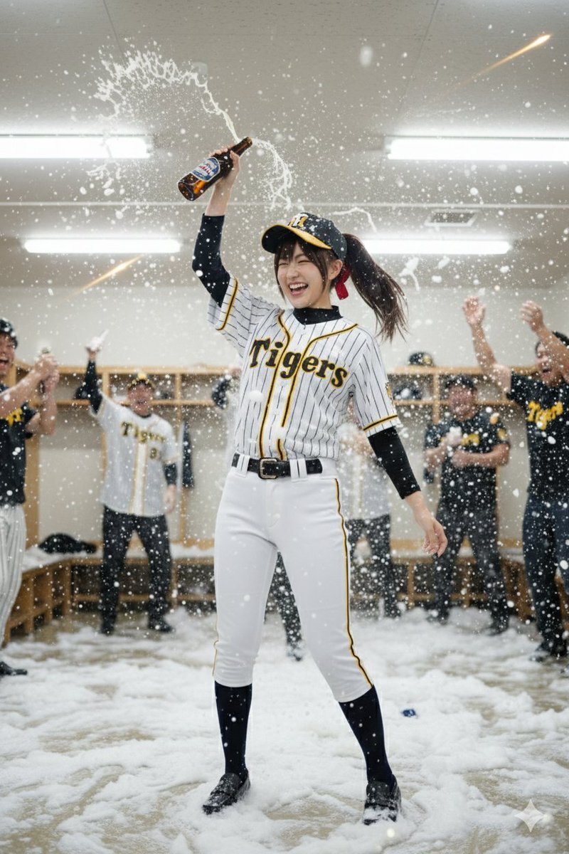 チャレンジテーマ 「ドッキリ大成功(なにかかける編)」 少し遅くなりましたが、阪神タイガース リーグ優勝おめでとうございまーすっ✨️ 静止画はGemini 動画はGrok #AIイラスト展 2045 pic.x.com/bIghgwZGW0