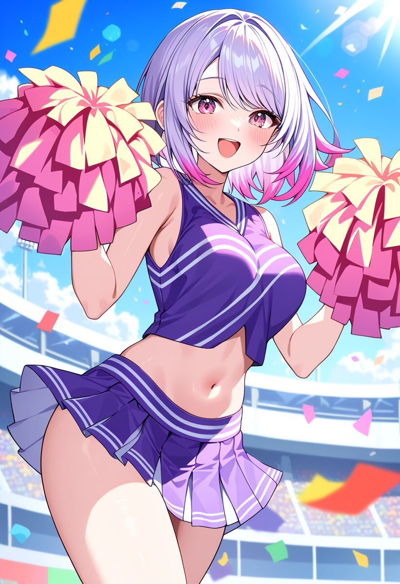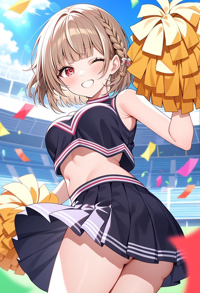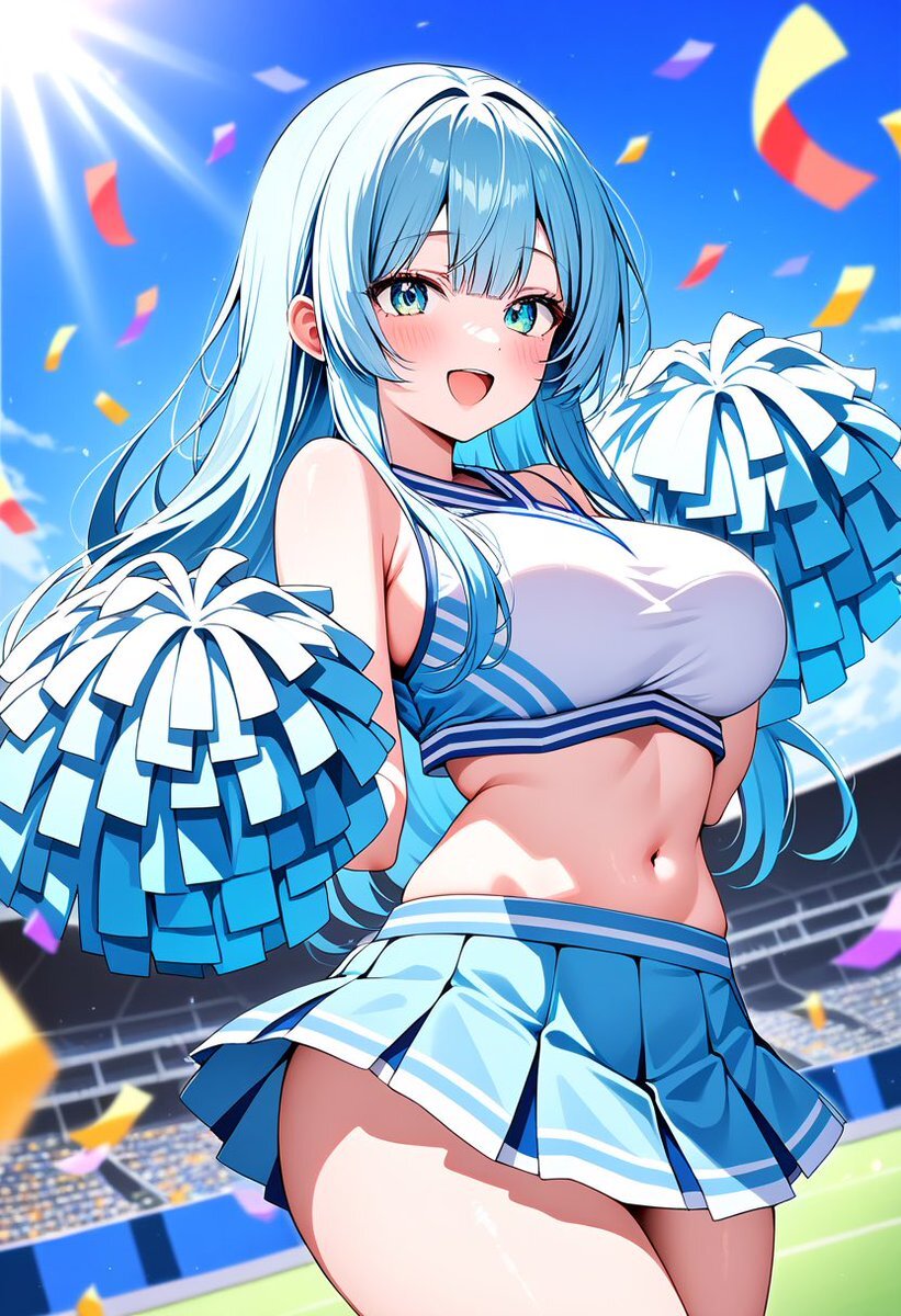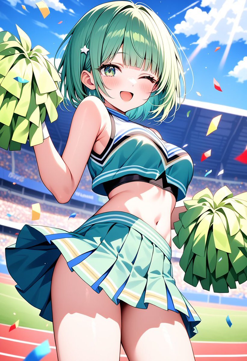 チアガール(みらい) やほ! みんなお仕事、お勉強、いっぱいいっぱいお疲れ様だよぉ💦 みんなのコト、私は応援してるからね📣 #みらい #AIイラスト #AIイラスト︎好きさんと繋がりたい pic.x.com/V17YVsQwch