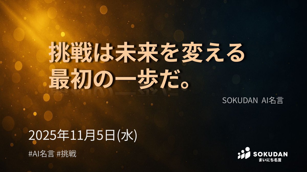 挑戦は未来を変える最初の一歩だ。- SOKUDAN_AI名言 行動することが未来を動かす出発点であると力強く語る名言です。これはAIに生み出してもらったやる気の出る名言です😊 #AI名言 #挑戦 pic.x.com/uu3cwSf1eb
