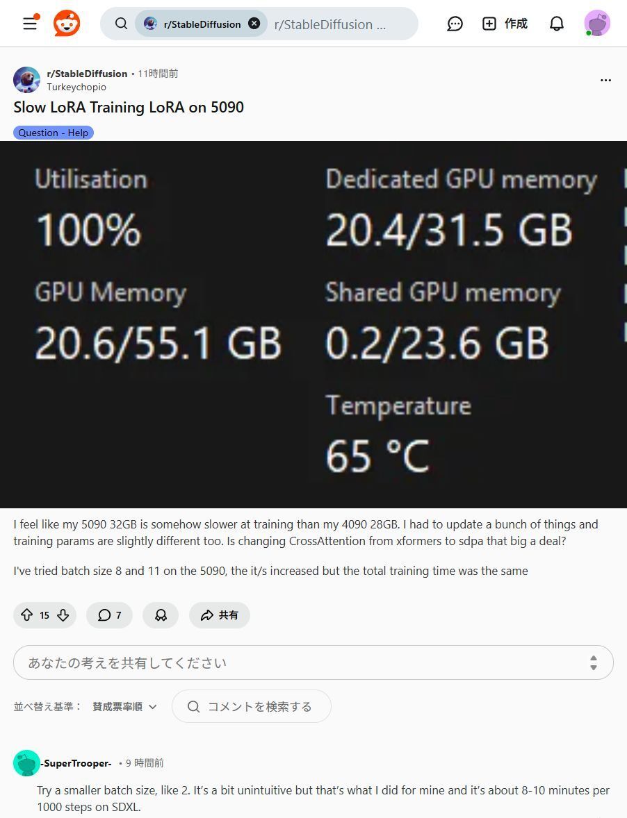 RTX 5090でも失速!?AI学習を爆速にする裏ワザ発見!💡 最新GPUでLoRA学習が遅い…実はバッチサイズが鍵🔑 小さなバッチサイズで劇的スピードアップの可能性が!設定最適化で効率爆上げできますよ!🚀 #AI学習 #GPU最適化 pic.x.com/skKVdbv3W2