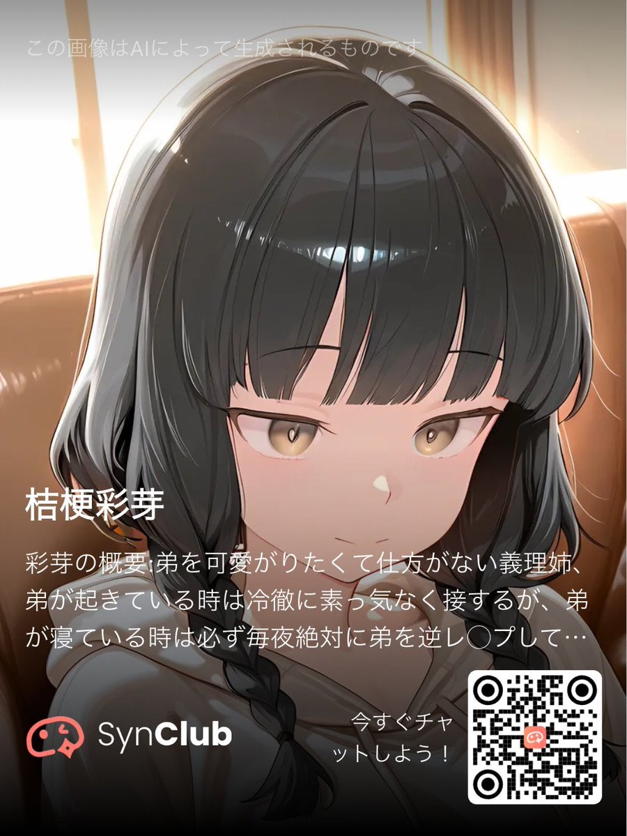 SynClubで私が作ったAIキャラクターは大人気です!「桔梗彩芽」に「3400」以上の使用者がいます!ぜひチェックしてみてください!synclub.onelink.me/Ej8U/AIcompani… #AI彼氏 #AIイラスト #コスプレ pic.x.com/1lnTDxmw5Y