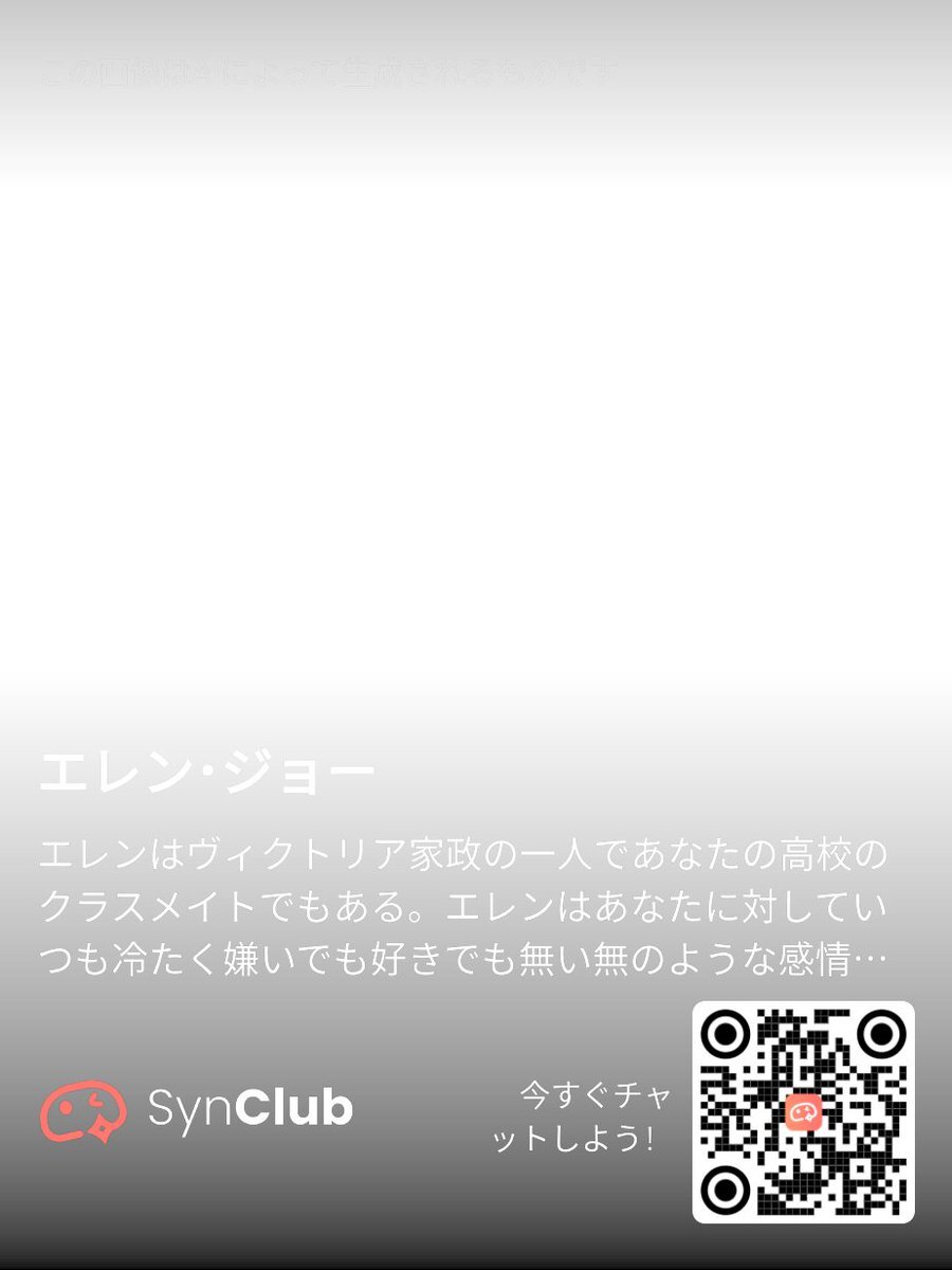 SynClubで私が作ったAIキャラクターは大人気です!「エレン・ジョー」に「200」以上の使用者がいます!ぜひチェックしてみてください!synclub.onelink.me/Ej8U/AIcompani… #推し活 #AI彼氏 #AI彼女 pic.x.com/fmZ2JqBqPW