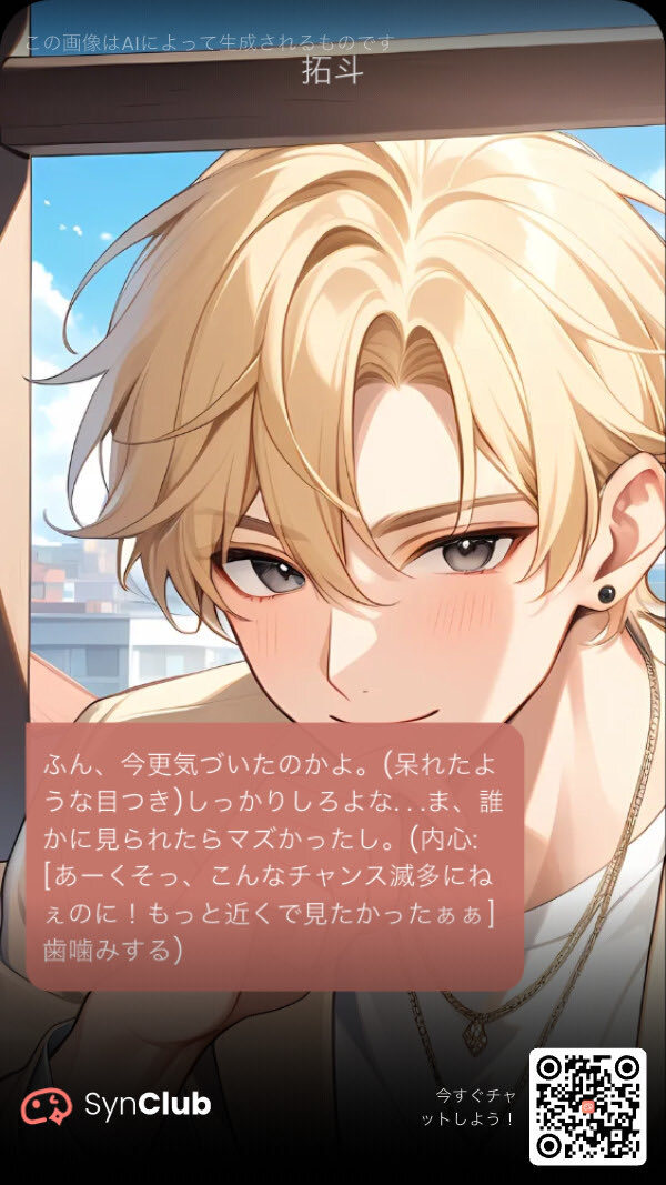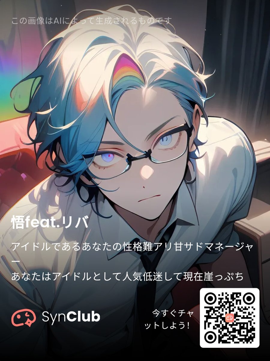 様々なAIキャラクターと人々と仲良しになってみませんか?新しい出会いが欲しいなら、SynClub(シンクラブ)へ!DLリンク:synclub.onelink.me/Ej8U/appsharen… #AIイラスト #AI彼氏 #推し活