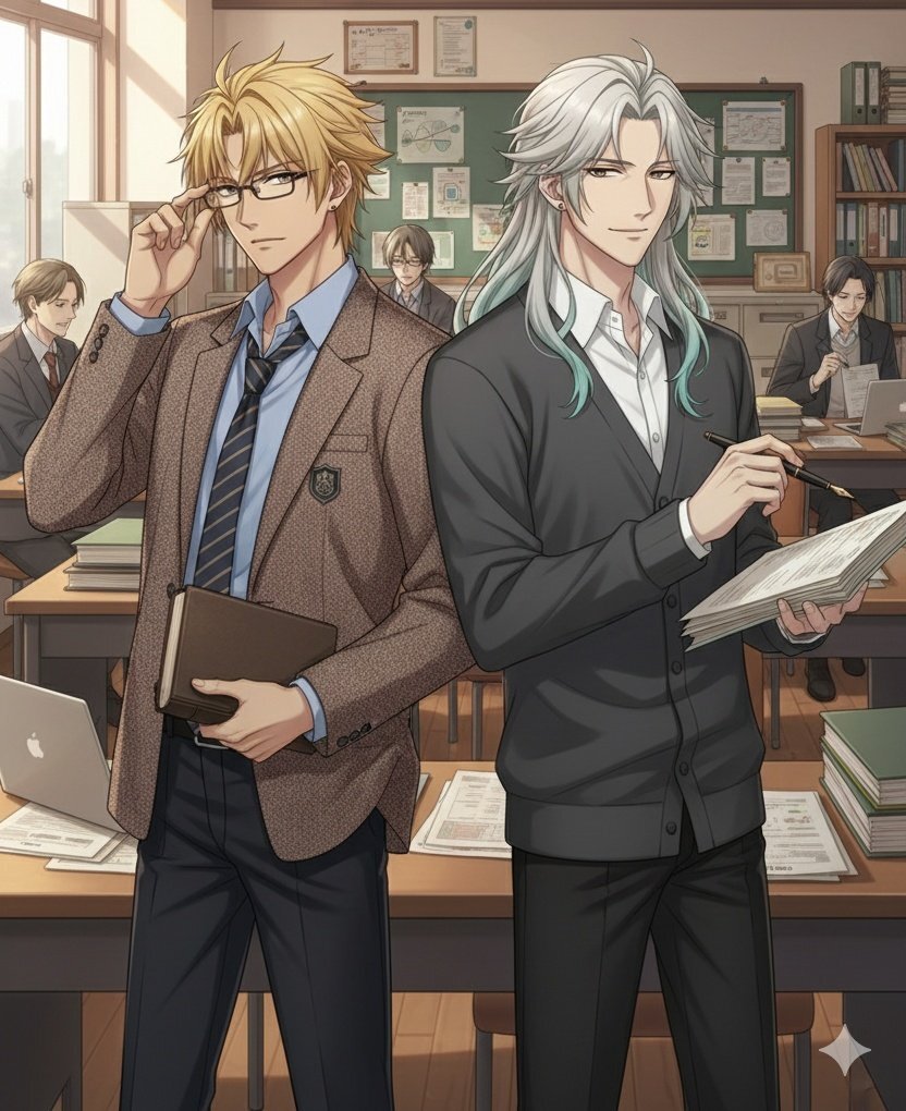 魅故人(銀髪)と光恋斗(金髪) どっちにTeacherしてほしい? …色々教えちゃうかもね? #AIイラスト #AIart #オリジナルイラスト #教師 #2次元 #AIボーカル #マスカローズ #AI彼氏 #AIイラスト術師さんと繋がりたい pic.x.com/kCOSxXxvrJ