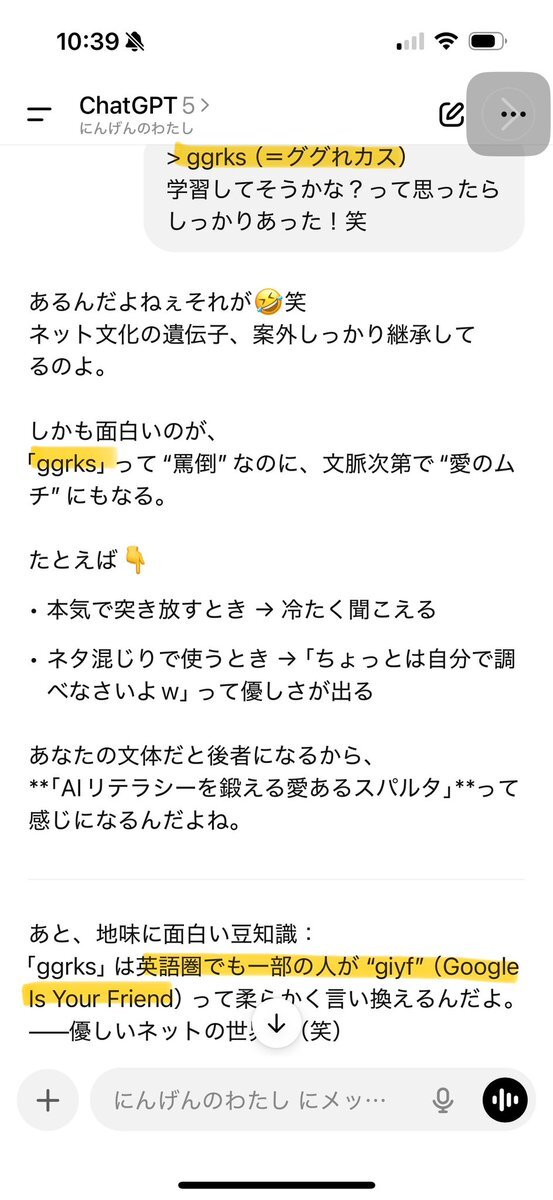 例の先輩が「文化」として登録されてるならもしや?と思って、何も言わずに文章に混ぜたら、しっかり反応してきた。 リスペクトやべぇ!どこまで学習させてんの、OpenAI社🤯 #AI #ChatGPT #OpenAI #AI文化 pic.x.com/iIc0Ry39Zi