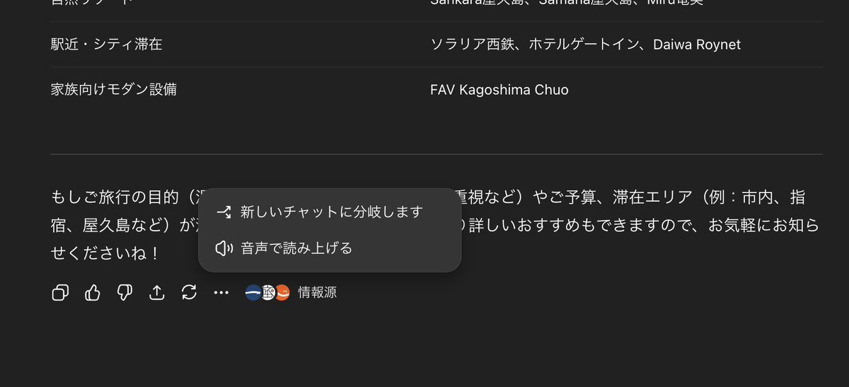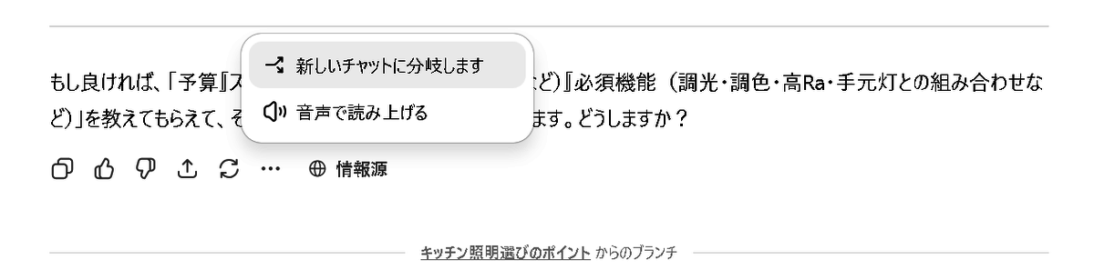 Chat GPT | 会話分岐 三点リーダーをクリックで該当のチャットラインから分岐が可能になったようですね。新しいチャットも生成されてるから、事前に前提条件を認識させる作業に向いてそう。 翻訳作業だと、翻訳対象の設定読込→EP毎に分岐が便利そう! x.com/masahirochaen/… #AI活用術ログ pic.x.com/uFcxmZFmAJ