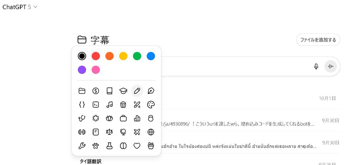 Chat GPT |projects いつのまにかアイコンとか色とか変えられるの知らなかった。地味に便利かも。 #AI活用術ログ pic.x.com/gMVOjbFPEO